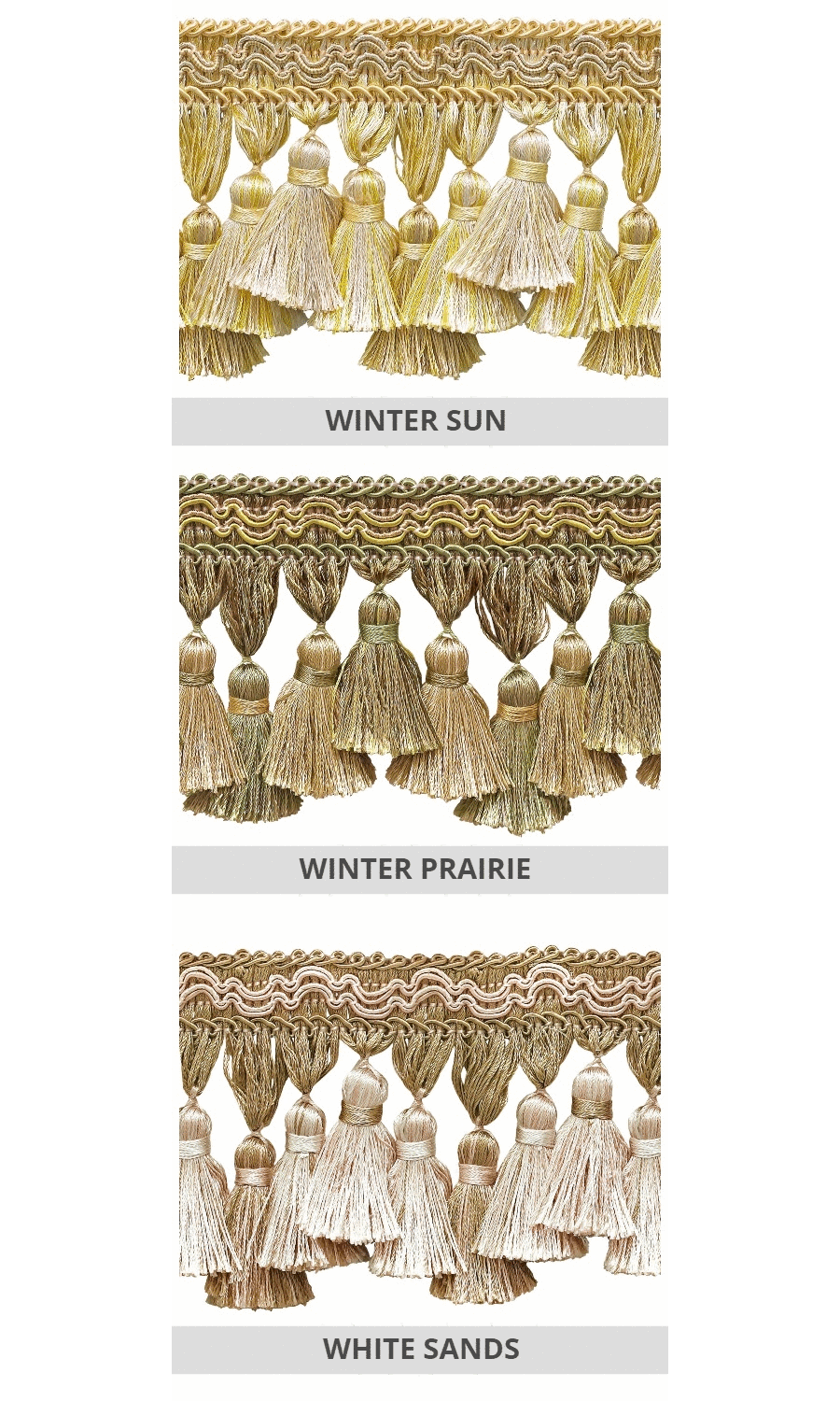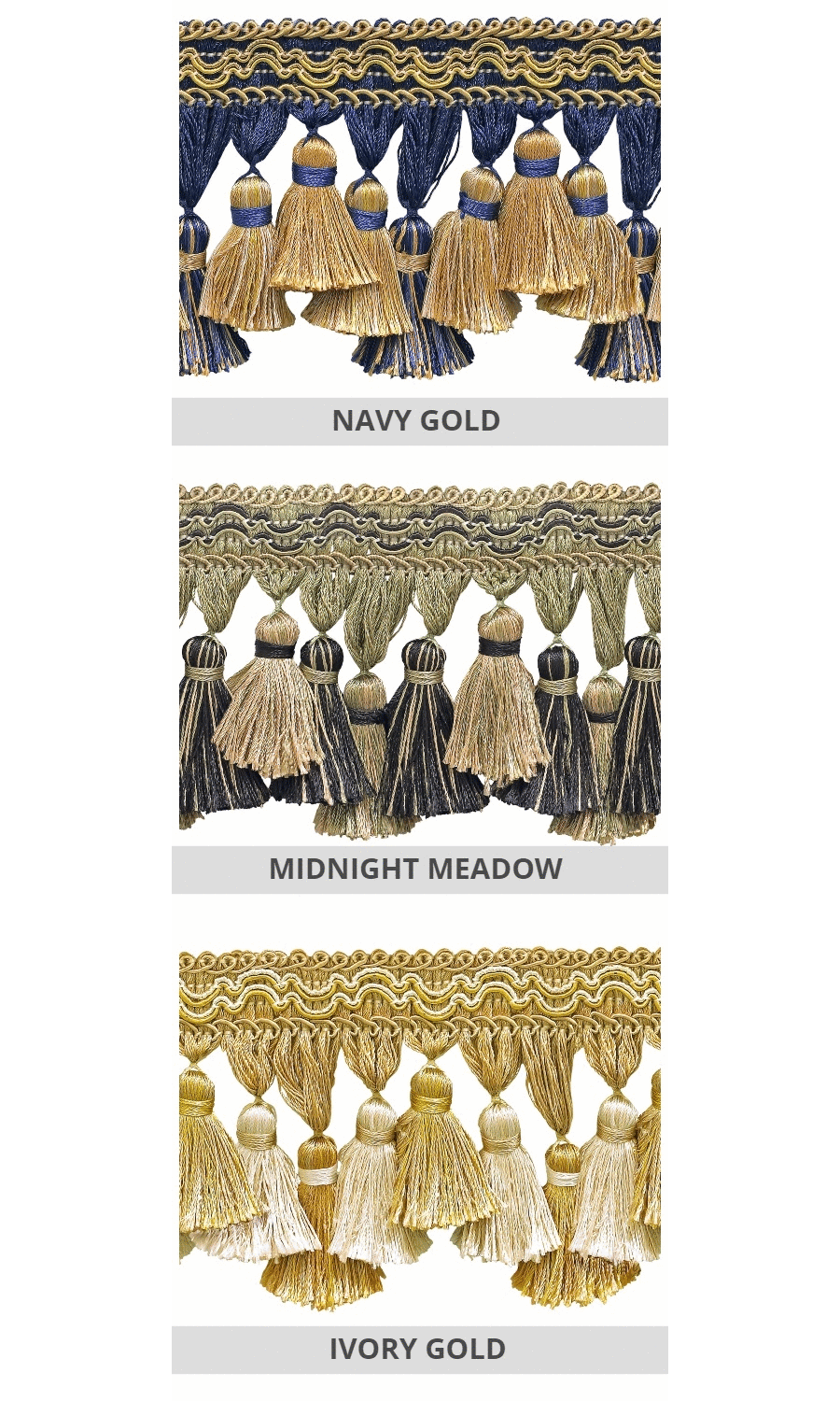 The header is intricately woven and each individual tassel in this trim is hand tied by expert artisans, making each bobble unique. We therefore expect very minor variance between trims and tassels.