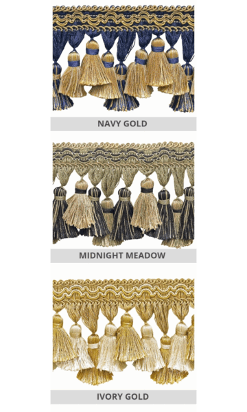 Please note our trims are not sold standalone. Please be sure to puchase your drapery or roman shades alongside this trim.