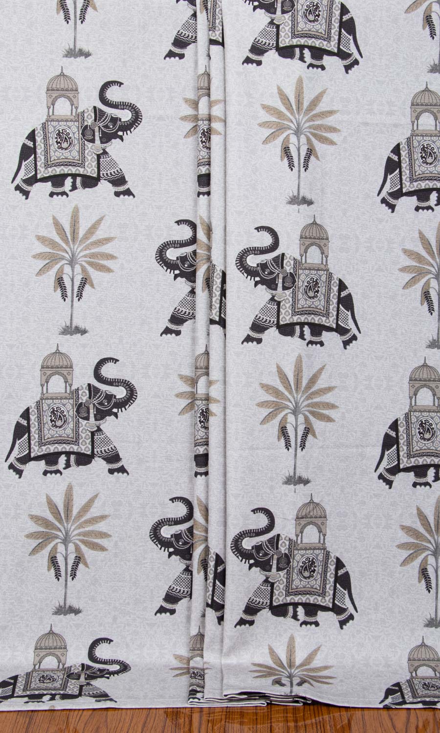 An eventful theme with a quiet color scheme. Falaq weaves a story of the tropical Indian landscape with the traditional motifs of plantain trees and ornately embellished elephants. The neutral palette makes this eclectic piece even more versatile to blend with various color schemes.