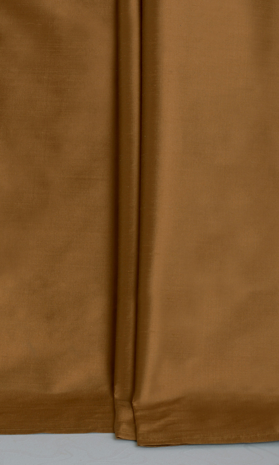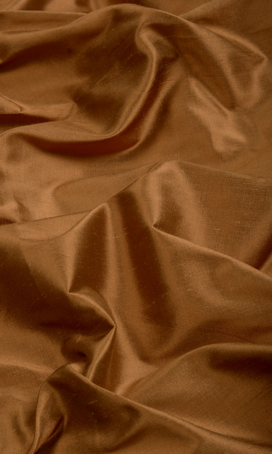 A pure silk drapery fabric in a rich copper brown shade. Its gorgeous color is enhanced with mellow sheen and intense depth that goes particularly well with earthen palettes. We recommend this fabric to liven up any elegant interior that needs a touch of brightness.