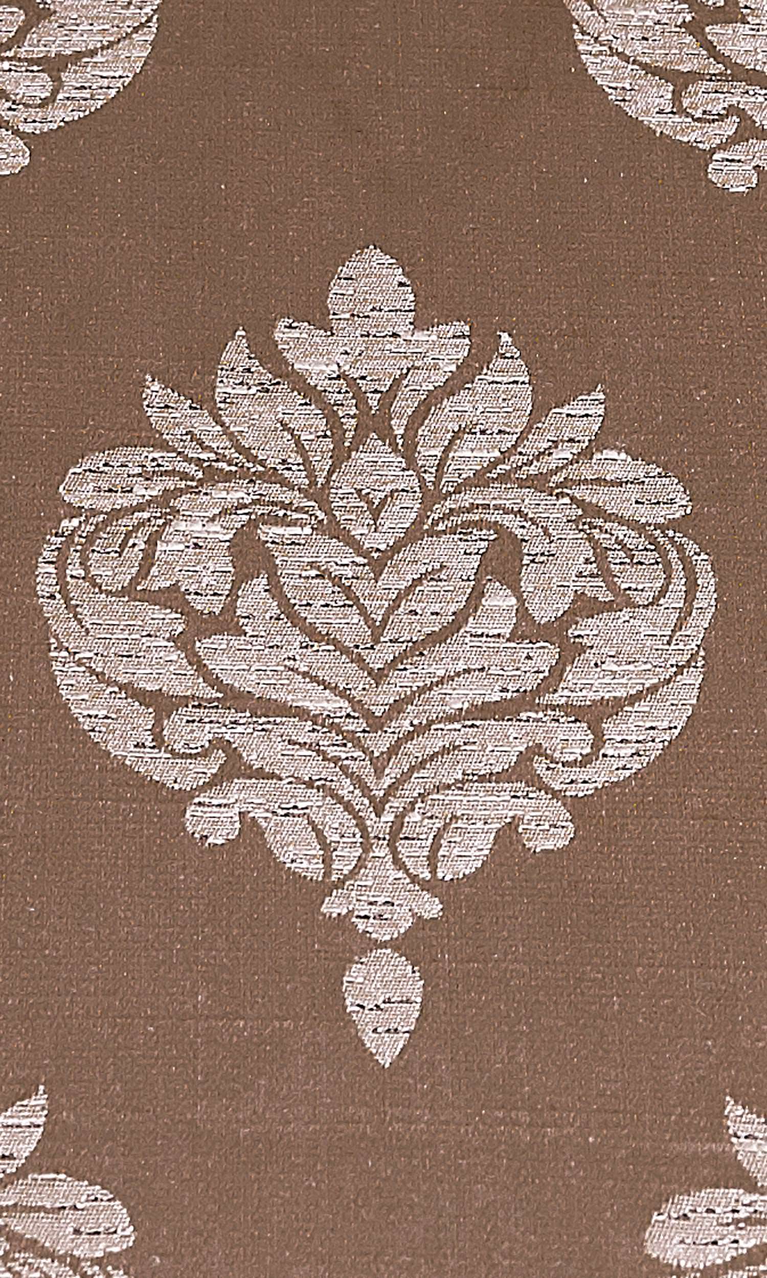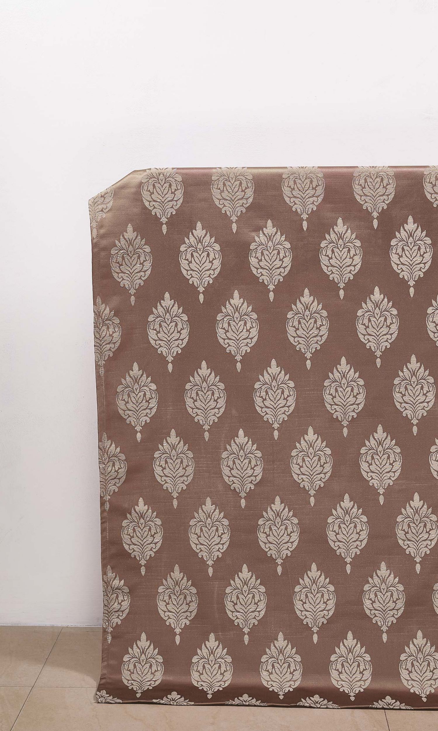 Create statement interiors by draping your windows with these self patterned damask curtains. Its intricately woven vintage foliage motif in soft tan brown on a pale russet brown backdrop creates a sophisticated twin tone effect. Subdued yet sublime!