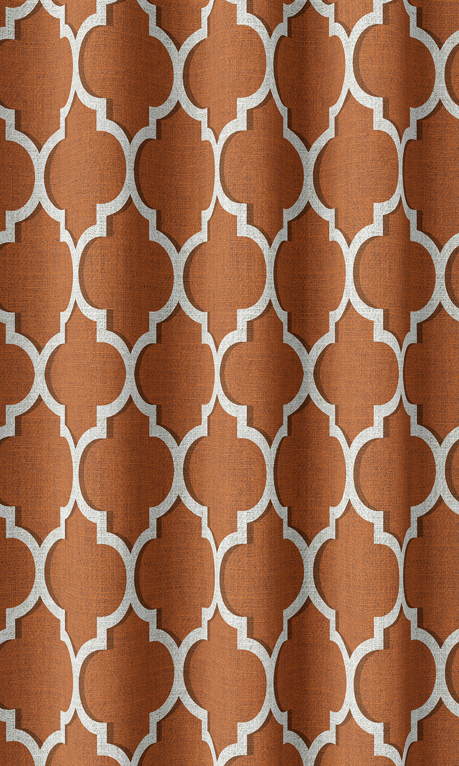 A stylistic interpretation of the classic Moroccan trellis tile pattern. Clean and geometric, it integrates ornate vintage with new age minimalism. The rich color palette of burnt orange and white enhances the understated yet unmistakably elegant appearance. Printed on a texturally rich, herringbone weave base, we recommend this fabric for curtains as well as blinds. Also a good one for children’s rooms.