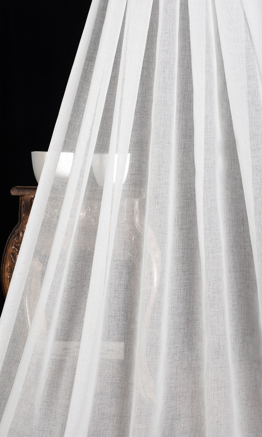 A plain white sheer that transforms simplicity into pure sophistication, wrapping your space in soft, luminous beauty. This gauzy fabric filters light with a gentle touch, creating a serene, airy atmosphere that feels effortlessly elegant. Welcome light and ensure daytime privacy with this ethereal veil for your windows. ‘Astris’ is nothing short of a true celebration, a statement of timeless style, delicate texture, and a whisper of grace for your home.
