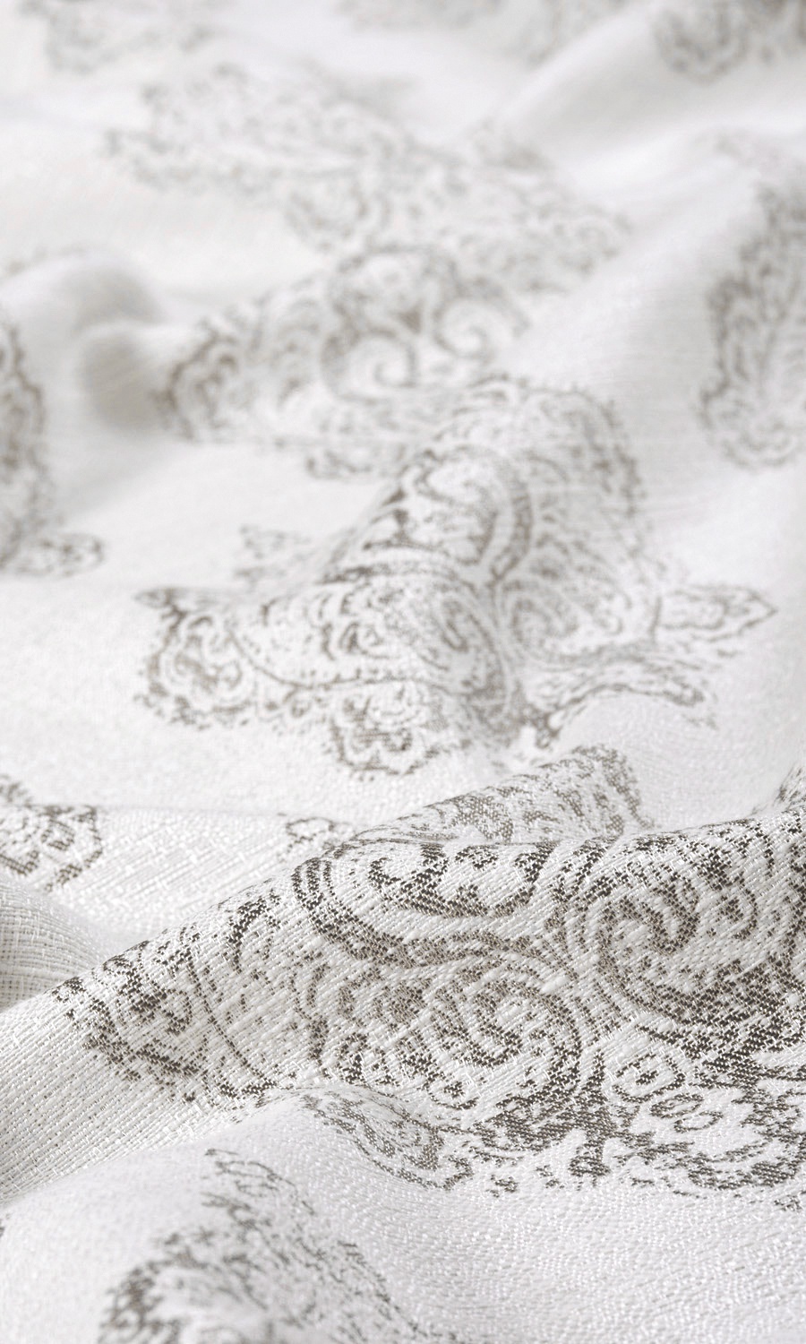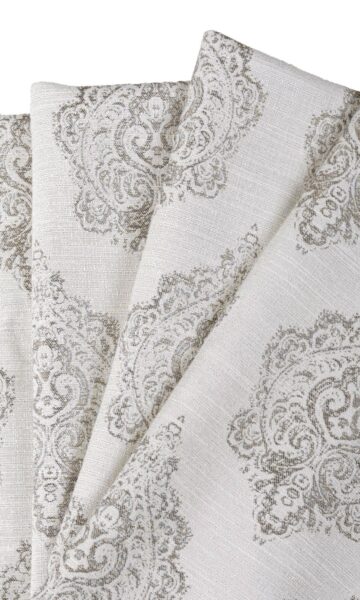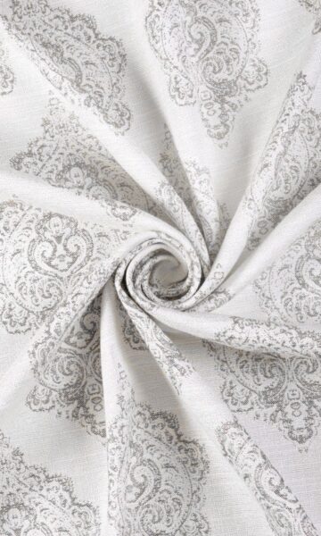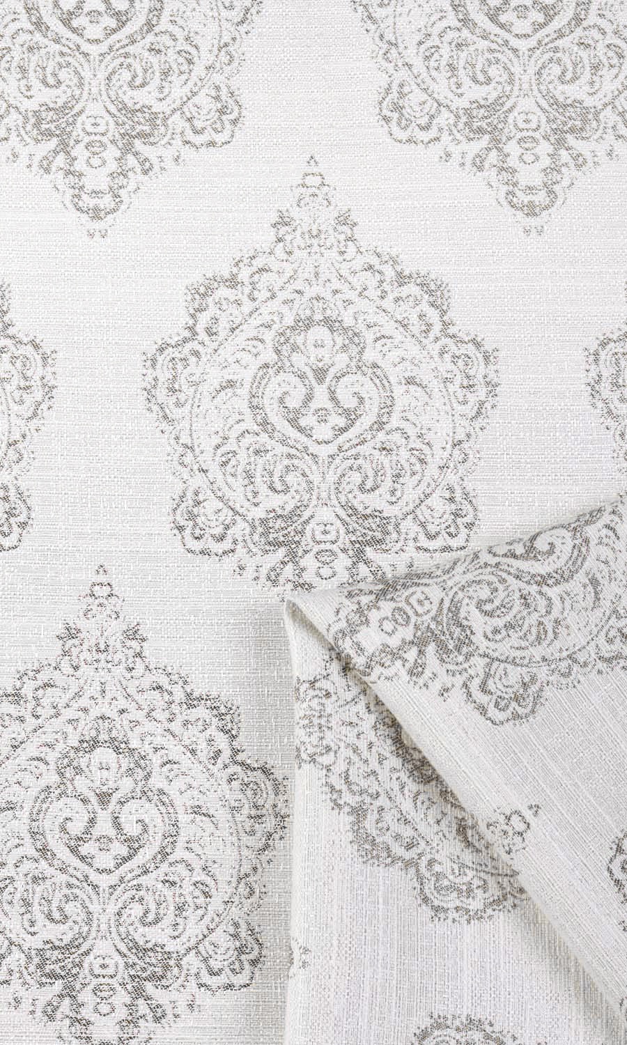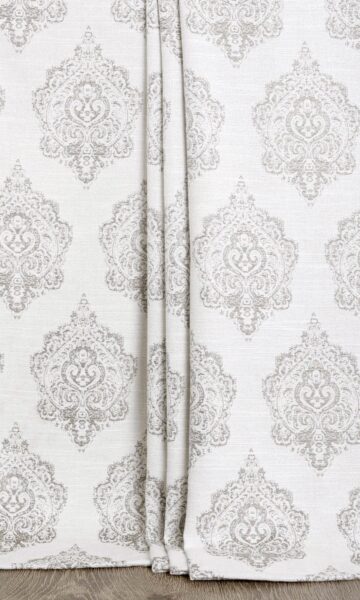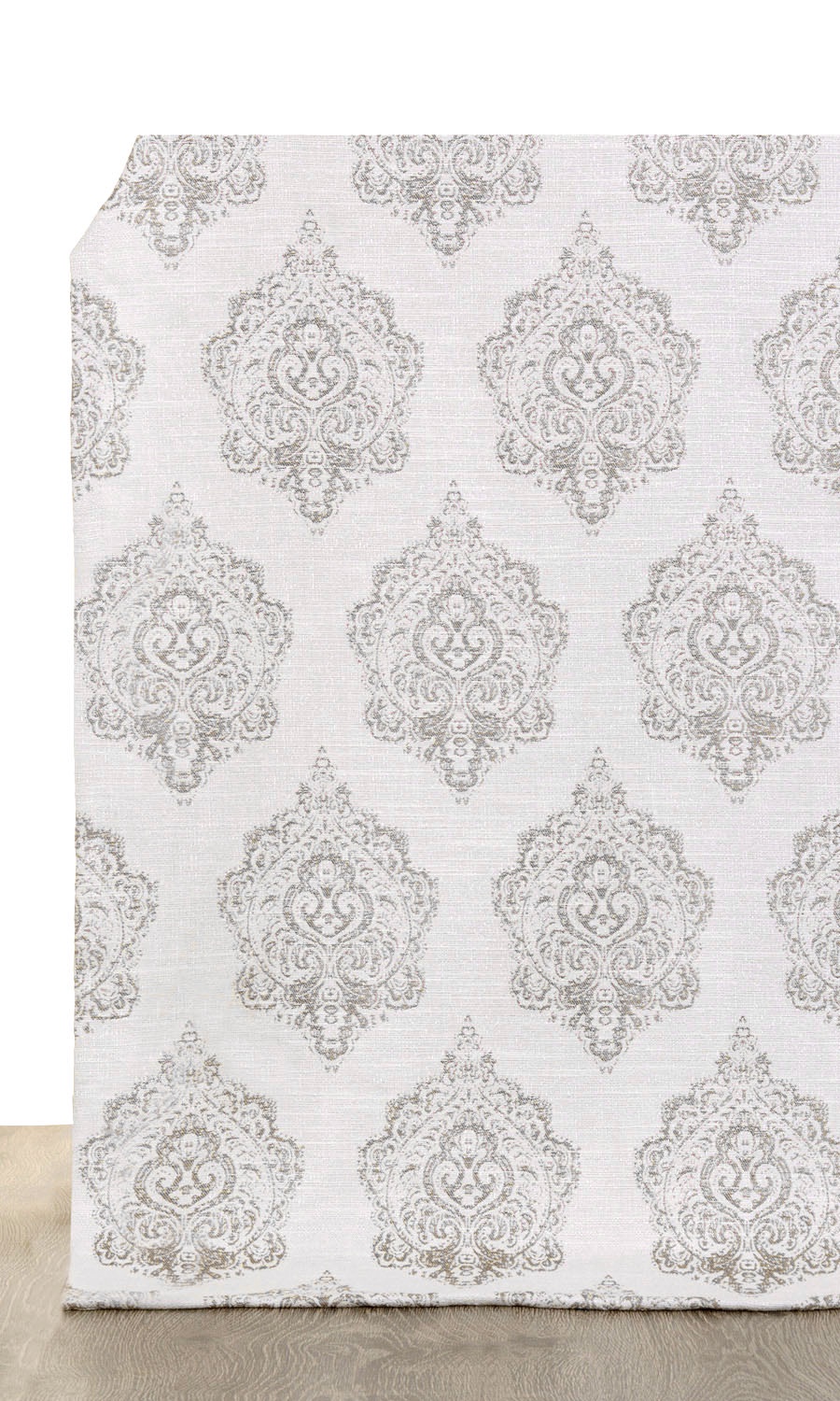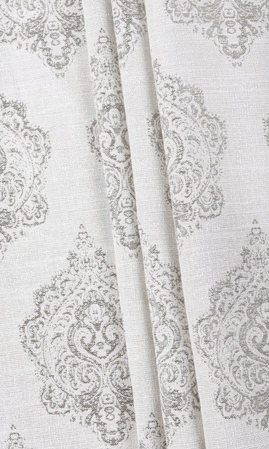 ‘Fixar’ Damask Poly-Cotton Custom Drapes (Off White/ Gray)