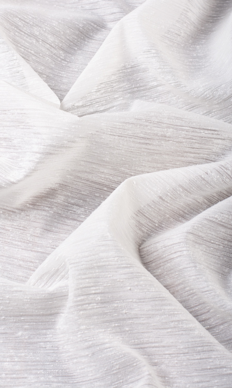 Like rippled waters resplendent with the moon’s silvery sheen, Florina is a self-patterned white sheer with a striated weave and raised texture. When the average white sheer cannot do enough to impress you, welcome light with in unparalleled style with this textured beauty.