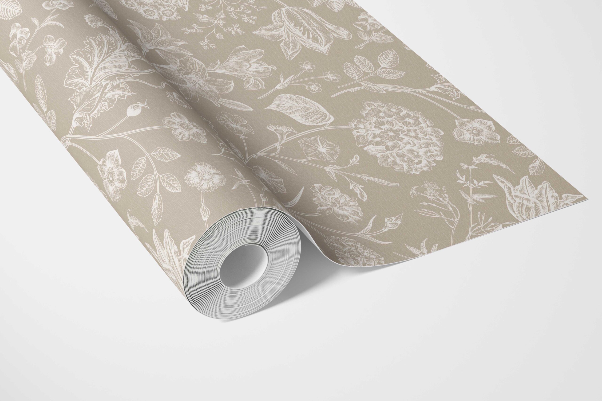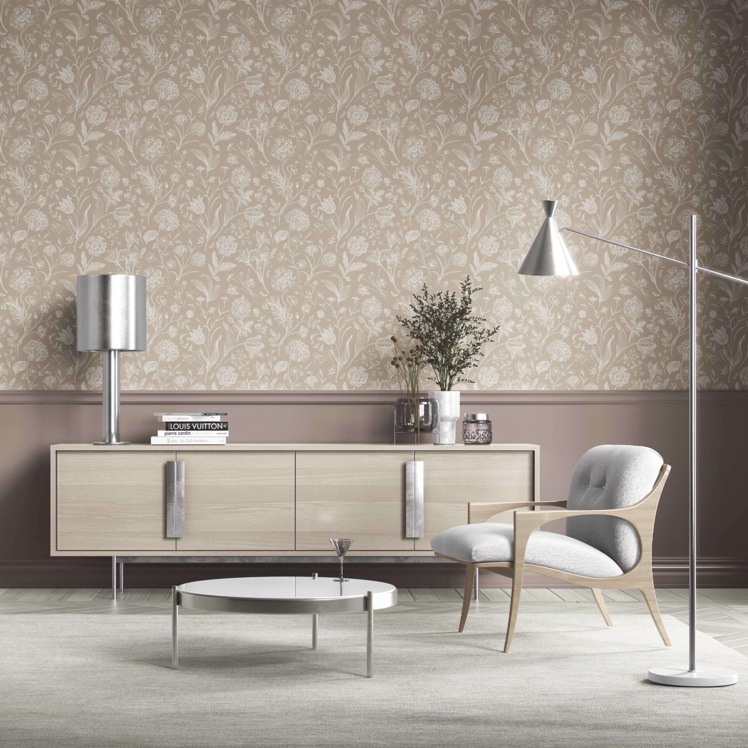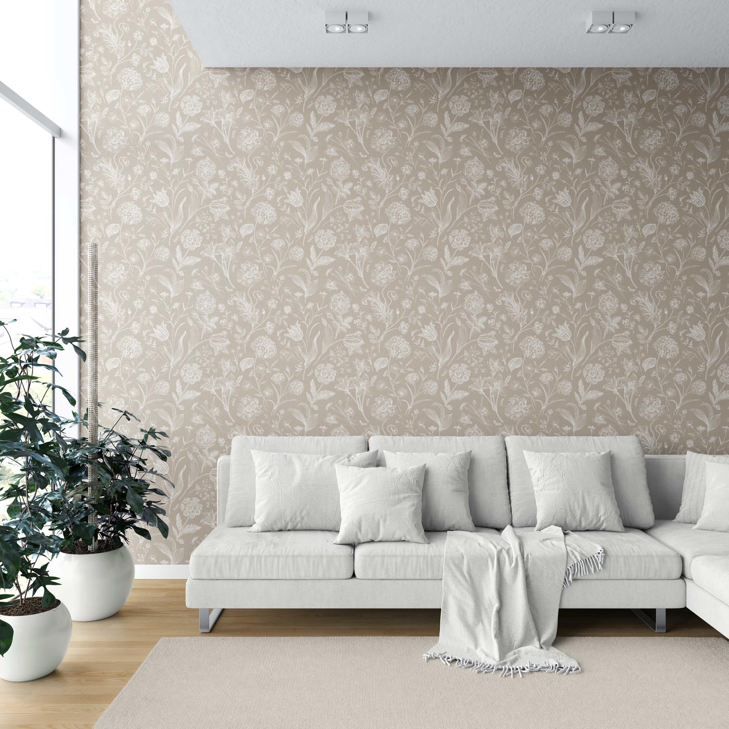 ‘Foamy Hills’ Neutral Floral/ Botanical Wallpaper (Beige/ Brown/ Cream)