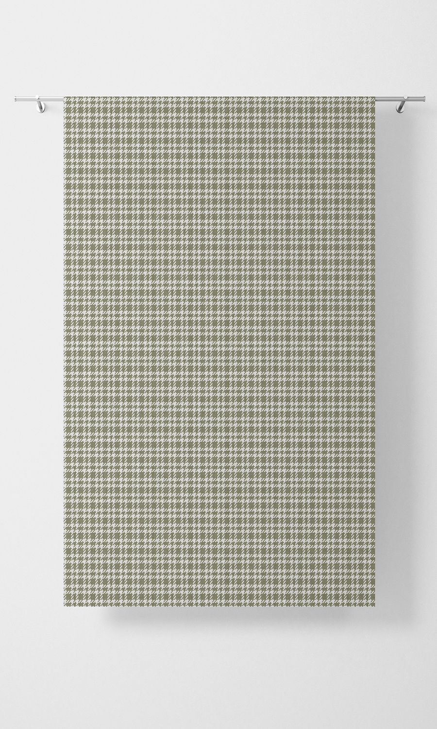 Featuring a springtime color palette of olive green and eggshell white, this charming fabric promises to pair well with virtually any decor style. While its all-over houndstooth pattern evokes traditional style, it’s equally at home in transitional or contemporary spaces. Plus, the fabric’s graceful drape makes it suited for various applications such as flat panel roman shades or drapery in any heading style.
