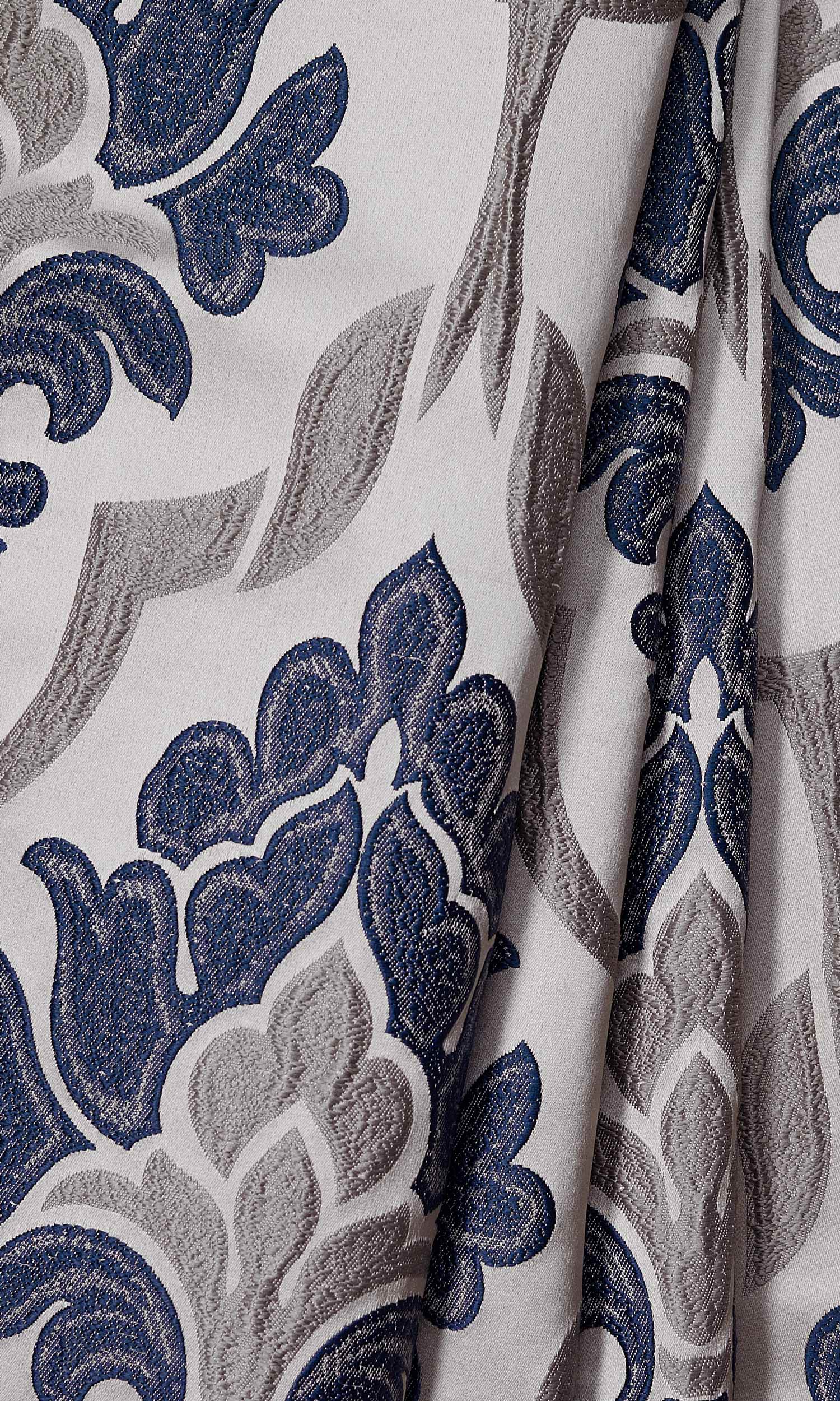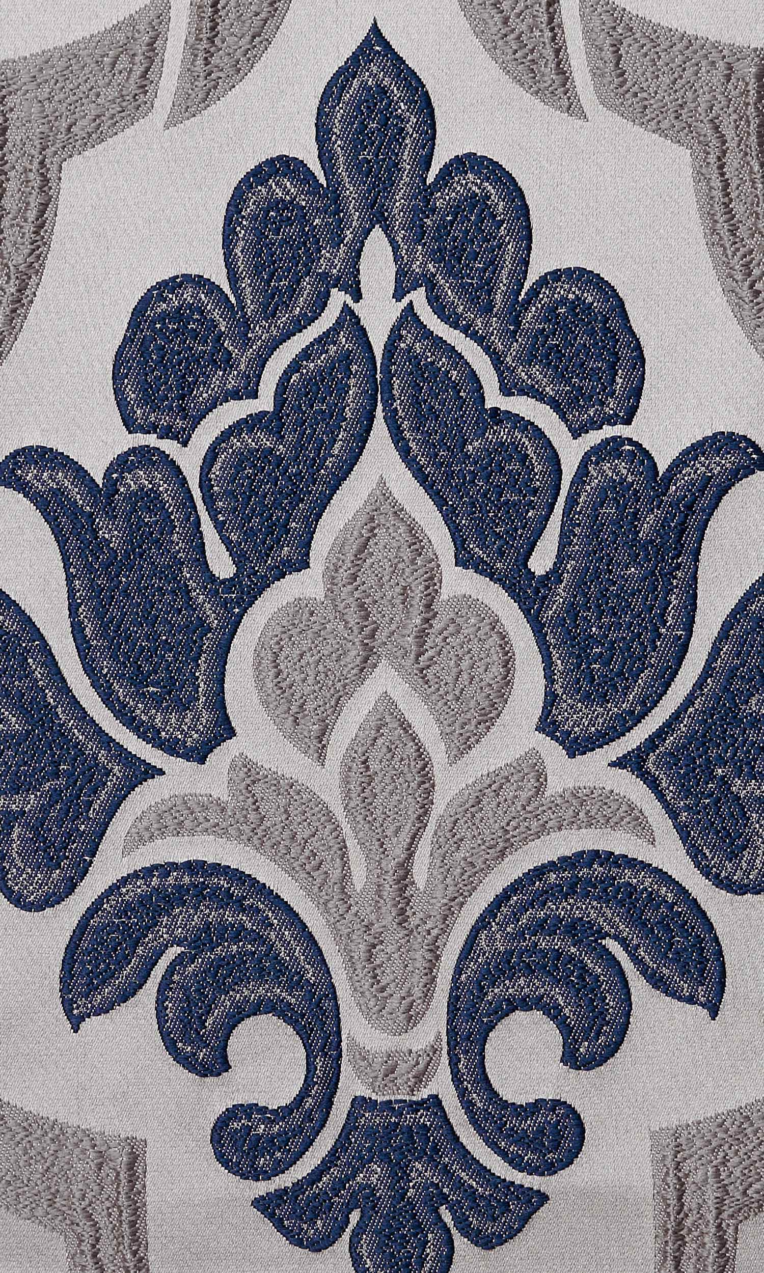 ‘Formia’ Damask Custom Drapes (Navy Blue/ Grey)