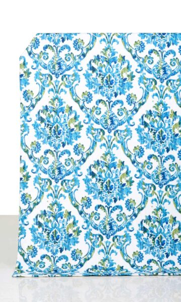 For elegant window treatments that must also make a strong visual impact, this immaculate piece of luxe beauty is on offer. Bearing the traditional and much-revered damask motif in olive green and various shades of blue on a white backdrop, this fabric is best described as an enchanting beauty. Drapes and roman shades in this bold patterned fabric are ideal for traditionally-styled large rooms and open-plan houses.