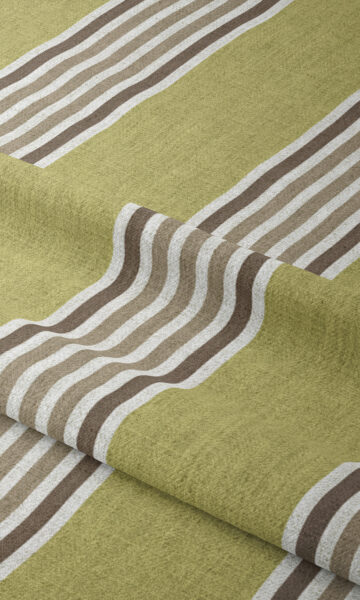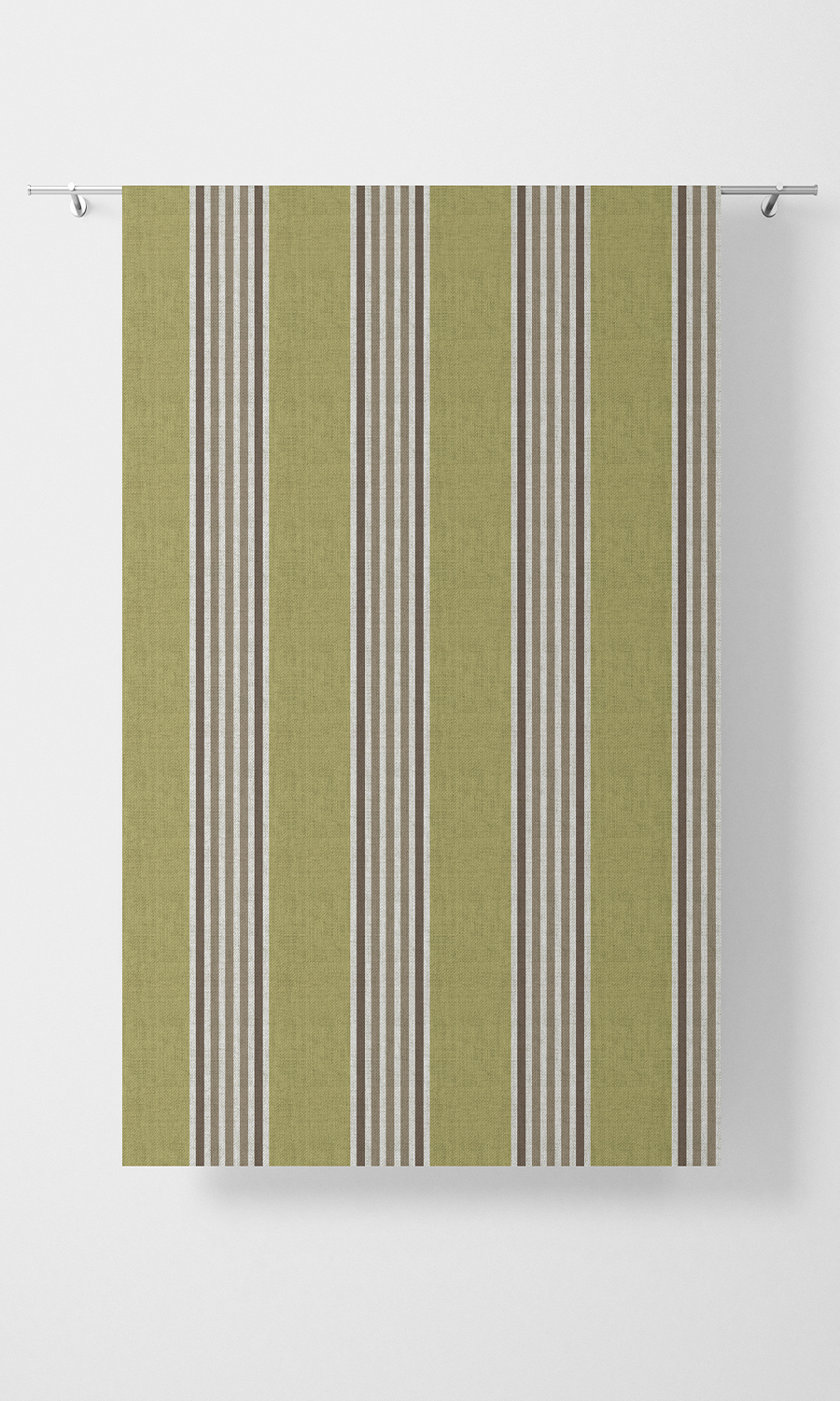 Create a cheerful mood for your living room or bedroom with this vibrant fabric. Featuring a repeating pattern of wide and candy stripes, Fresh Lime has a rich herringbone weave base. It boasts statement hues of chartreuse green and browns that will add a pop of pizzazz to your living space, and is suited to many different decorating styles, including contemporary, transitional and mid-century modern. We recommend showcasing this fabric in flat panel roman shades and casual style drapes.?