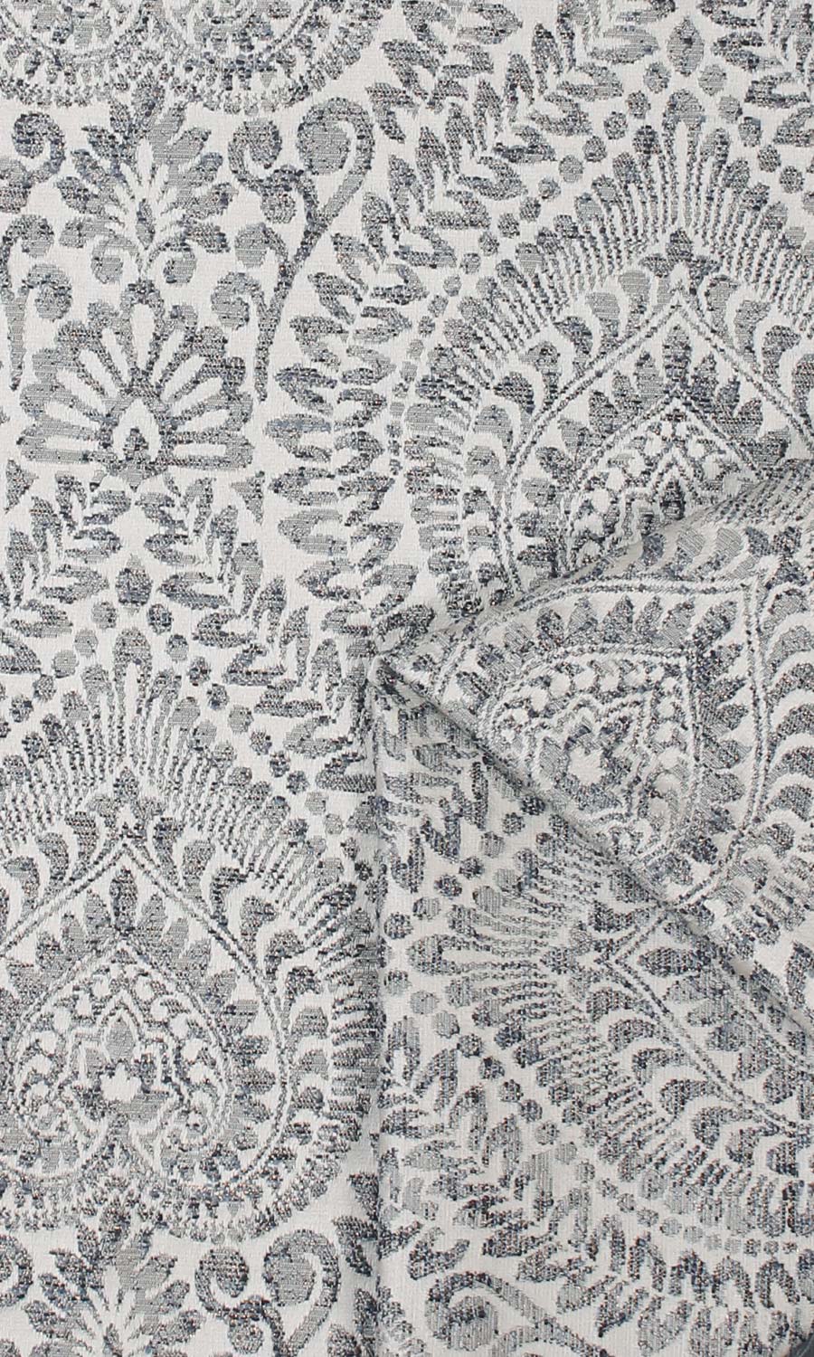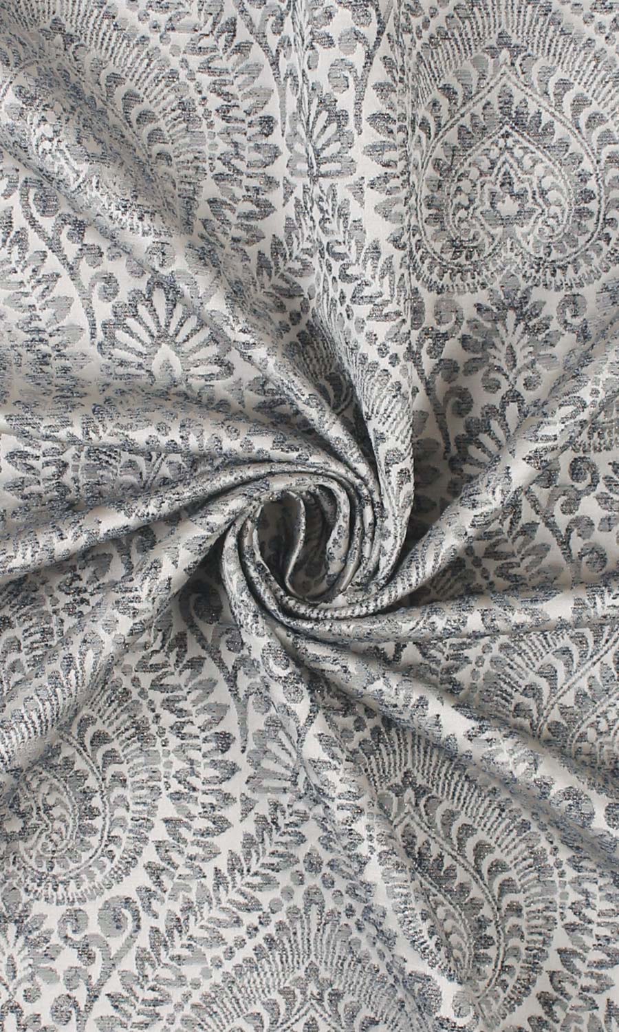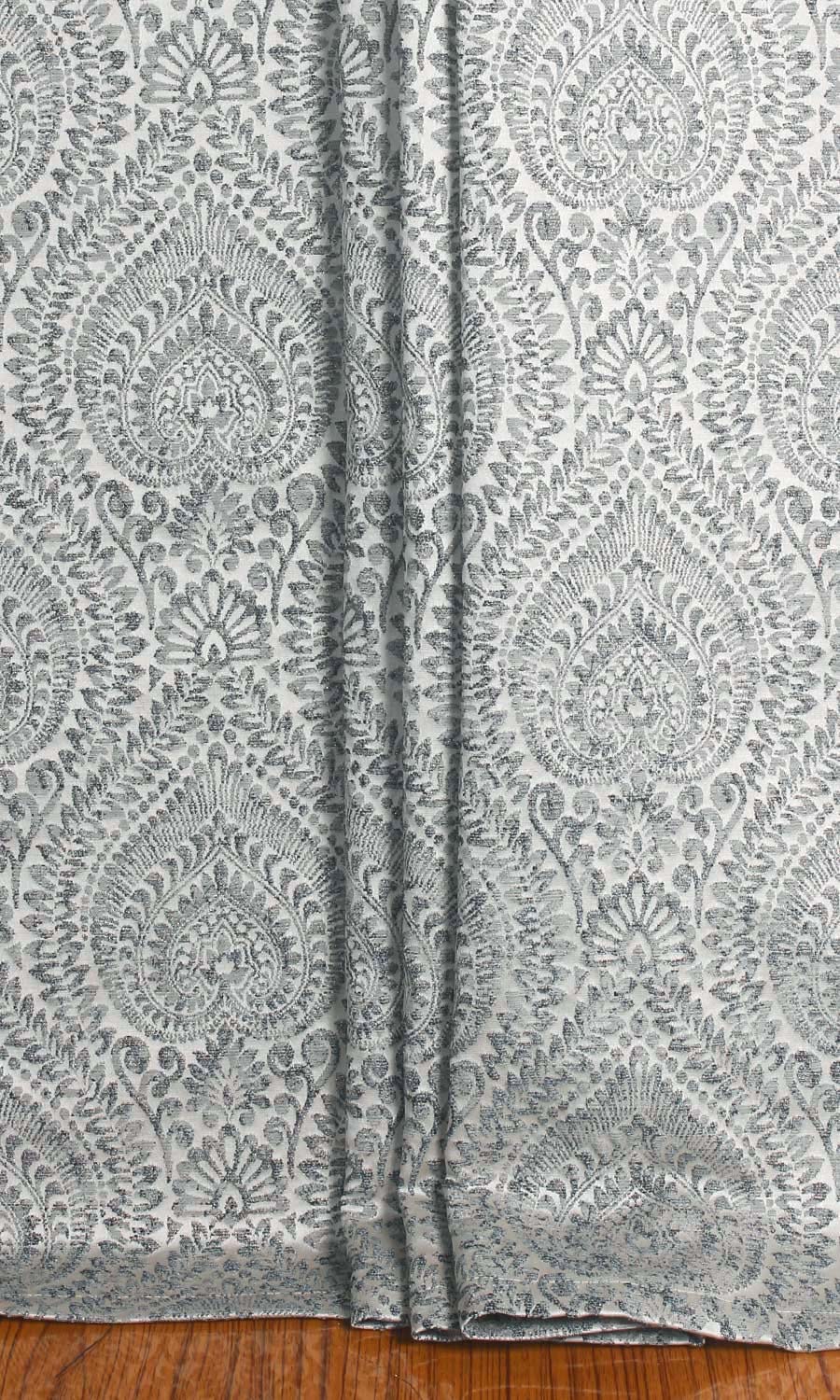 ‘Gajner’ Textured Floral Bespoke Drapes (Grey/ Deep Blue)