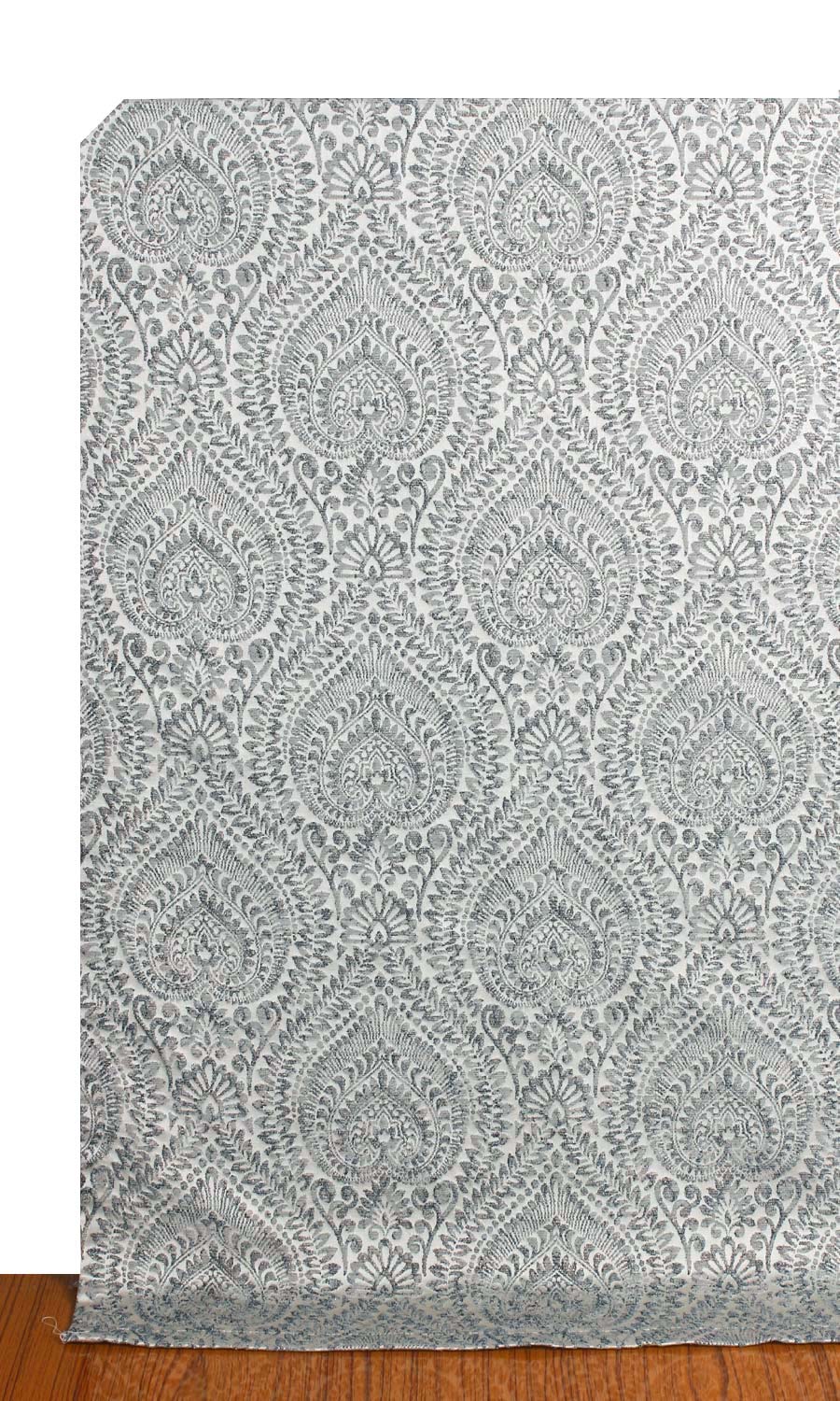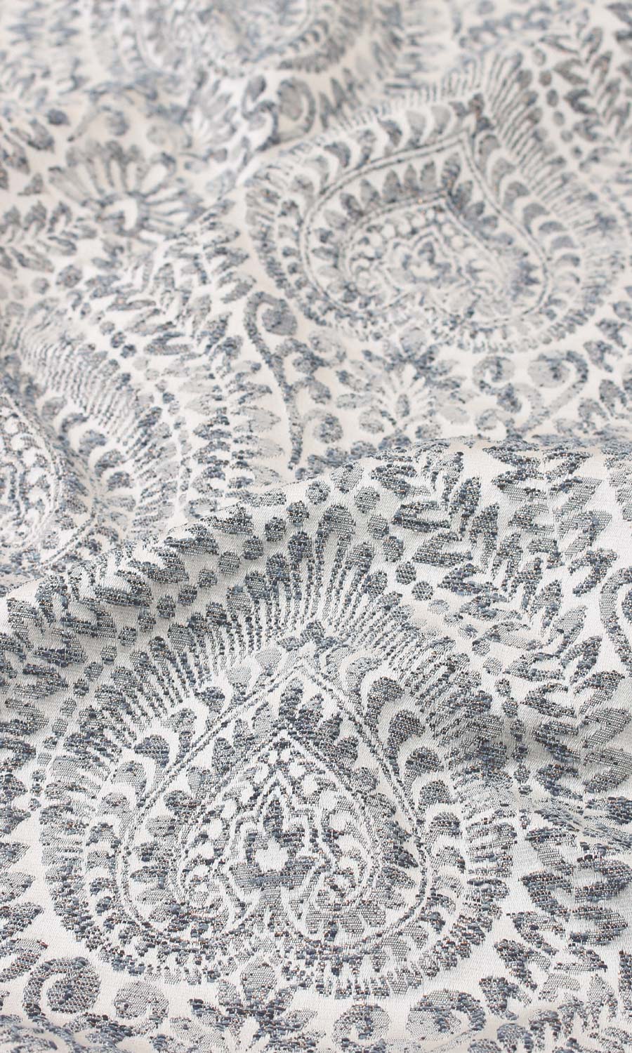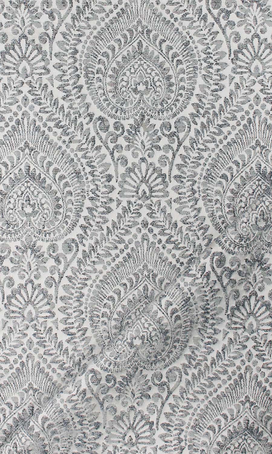 ‘Gajner’ Textured Floral Bespoke Drapes (Grey/ Deep Blue)