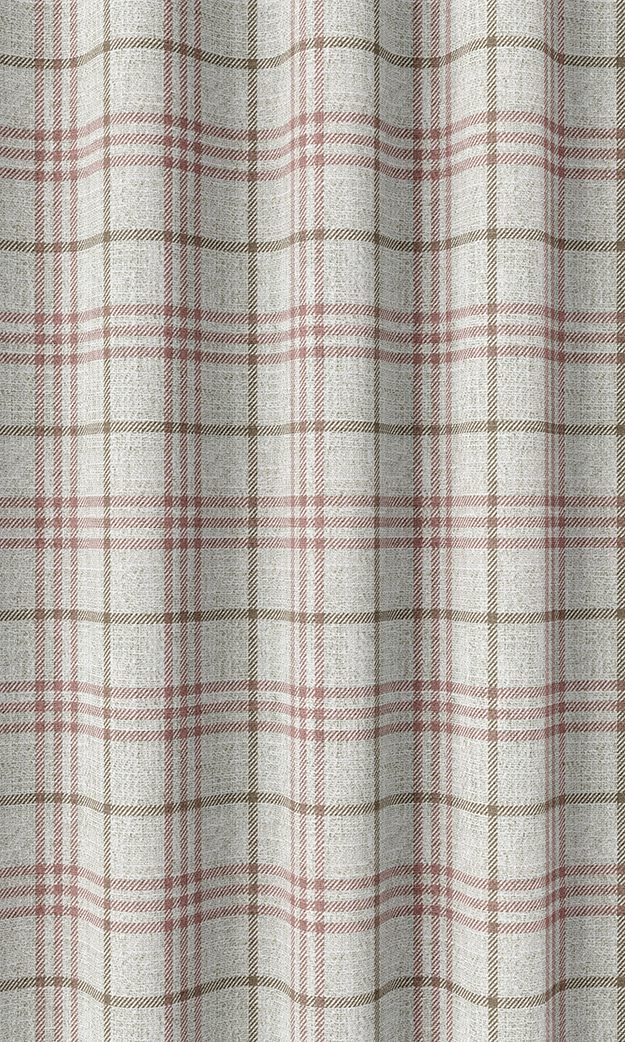 Featuring blush-red and brown check on a parchment white backdrop, this plaid fabric is the perfect blend of elegance and homeliness. The checkered pattern is a modern take on the traditional plaids. While window treatments in this lovely fabric will never cease to evoke the country vibe, they will fare equally well in kitchens, patios, and cozy living rooms of contemporary homes. Draperies stitched in this fabric in tab top or flat panel styles will be fantastic additions to a casual space. Back-slatted roman shades are highly recommended for the checked pattern to be presented without any visual interruption.