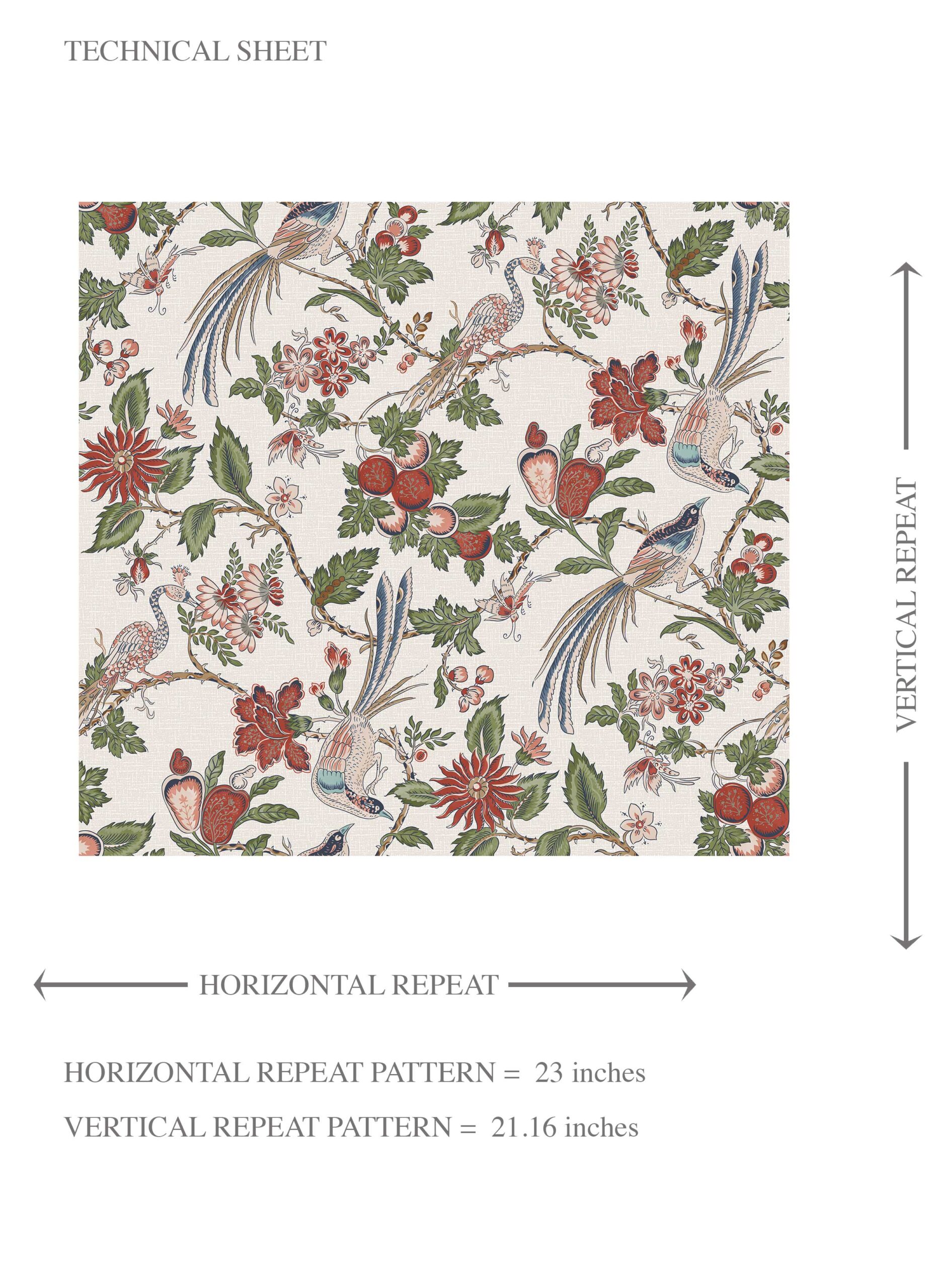 NON-PASTED: ‘Ginerva’ is an unpasted wallpaper installed by applying adhesive paste (not provided by us, but easy to source) to the wall. While peel-and-stick papers do not leave much room to change the paper’s position once you start applying it, the traditional, non-pasted application is more forgiving, allowing for better positioning when matching patterns.