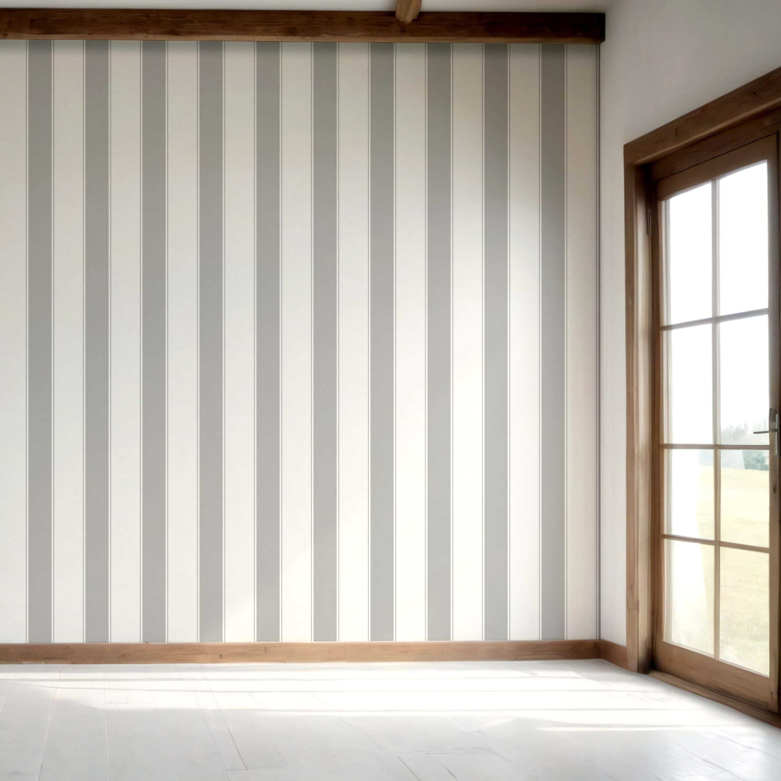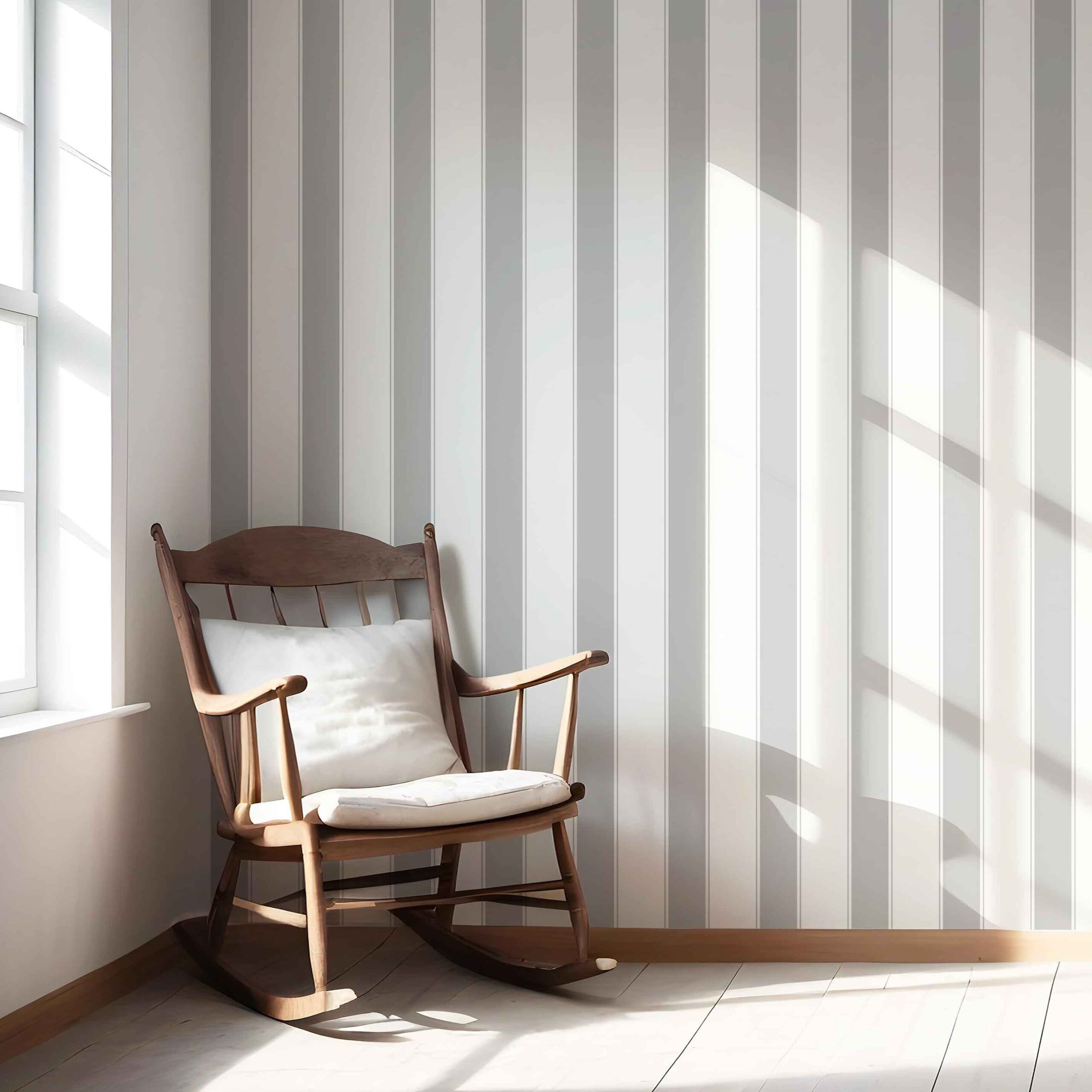 ‘Glinted’ Neutral Geometric Striped Wallpaper (Gray/ White)