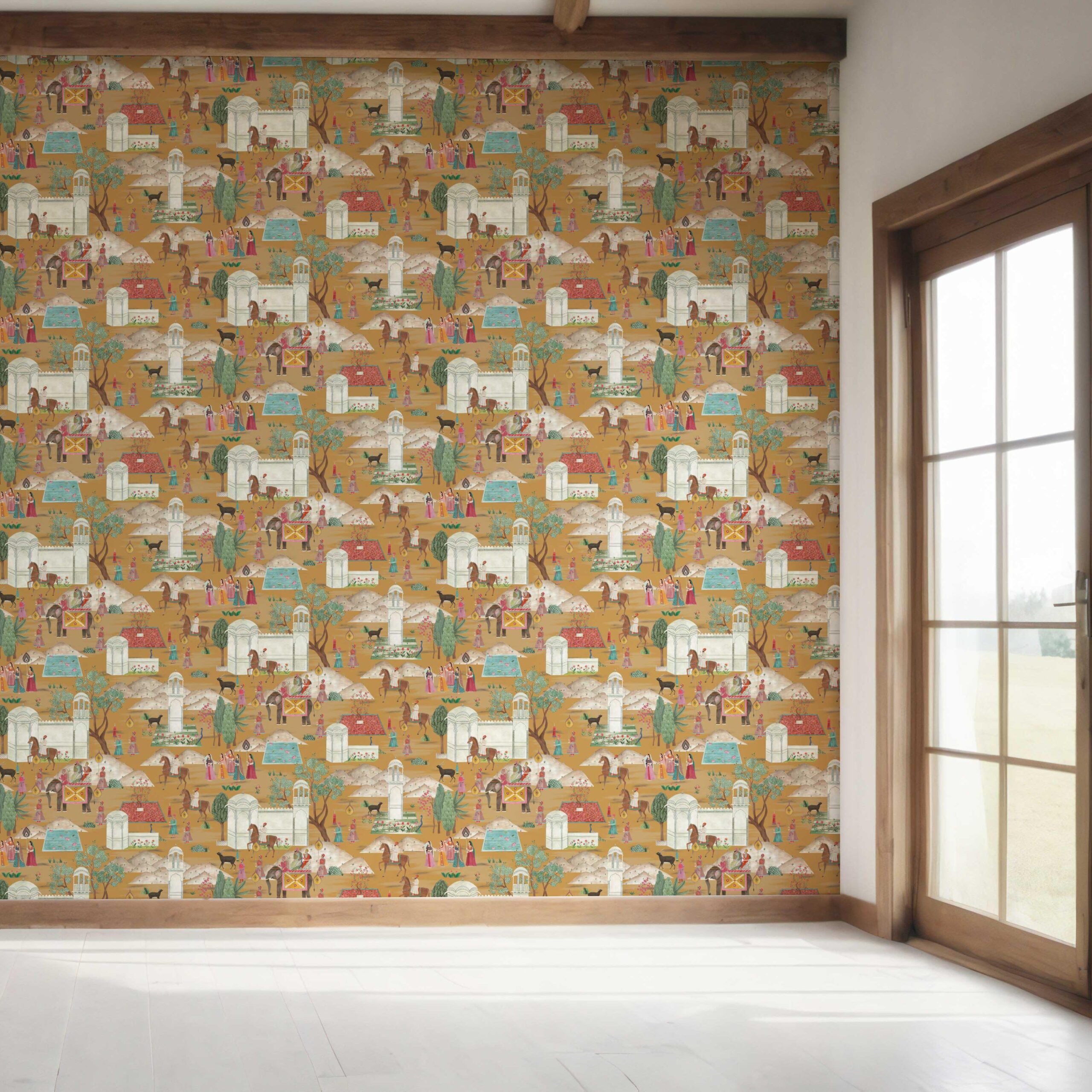 NON-WOVEN: Crafted on a non-woven base, ‘Gokul’ is dimensionally stable, tear-resistant, durable and moisture-resistant. Unlike vinyl wallpaper, it does not warp, stretch or shrink over time. Instead, it is breathable, helps prevent molding, and does not trap odours, making it well-suited for humid areas like kitchens, bathrooms and laundry rooms.