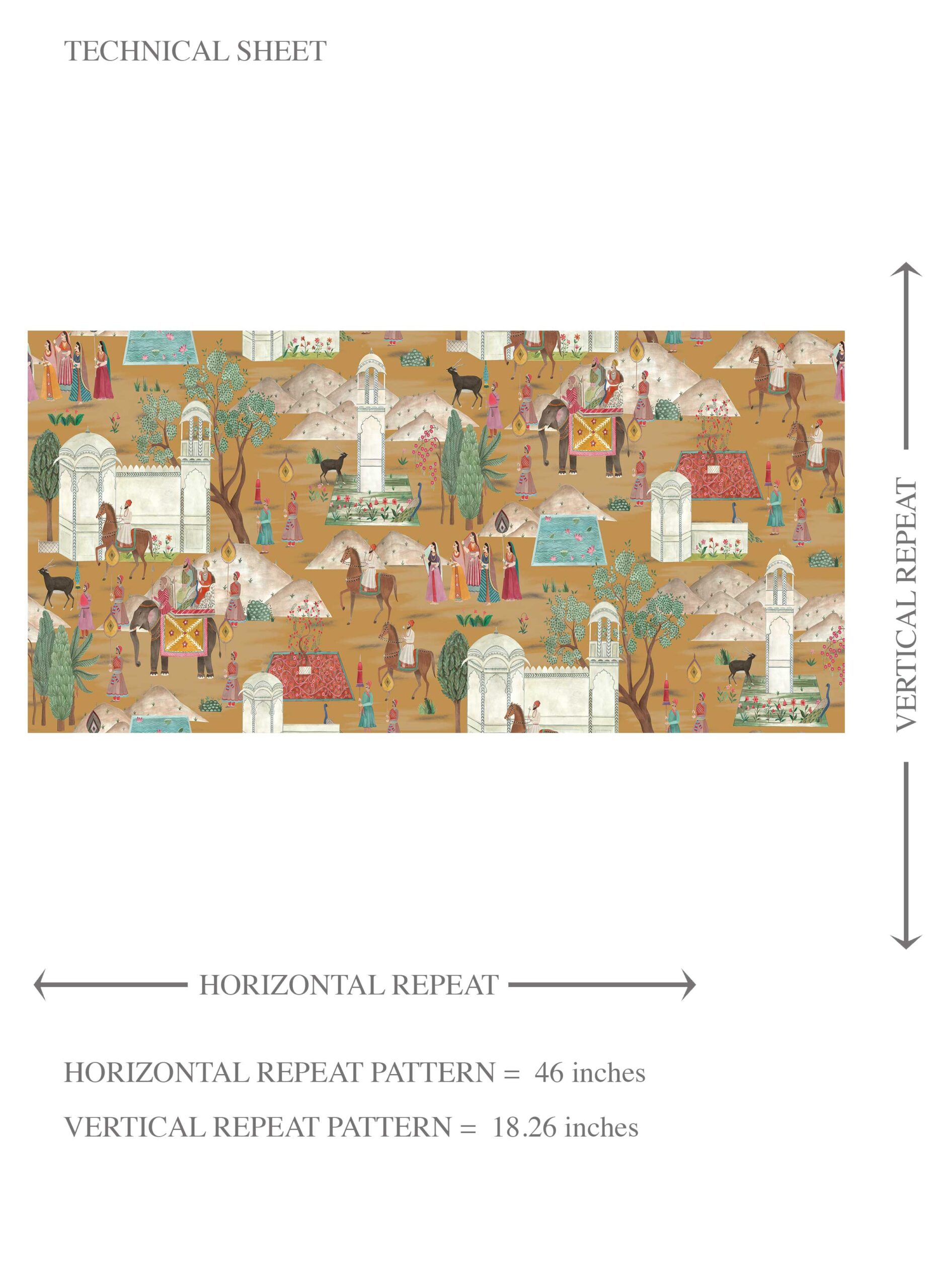 NON-PASTED: ‘Gokul’ is an unpasted wallpaper installed by applying adhesive paste (not provided by us, but easy to source) to the wall. While peel-and-stick papers do not leave much room to change the paper’s position once you start applying it, the traditional, non-pasted application is more forgiving, allowing for better positioning when matching patterns.
