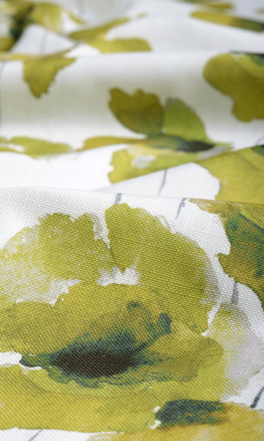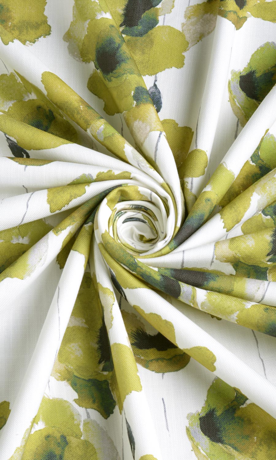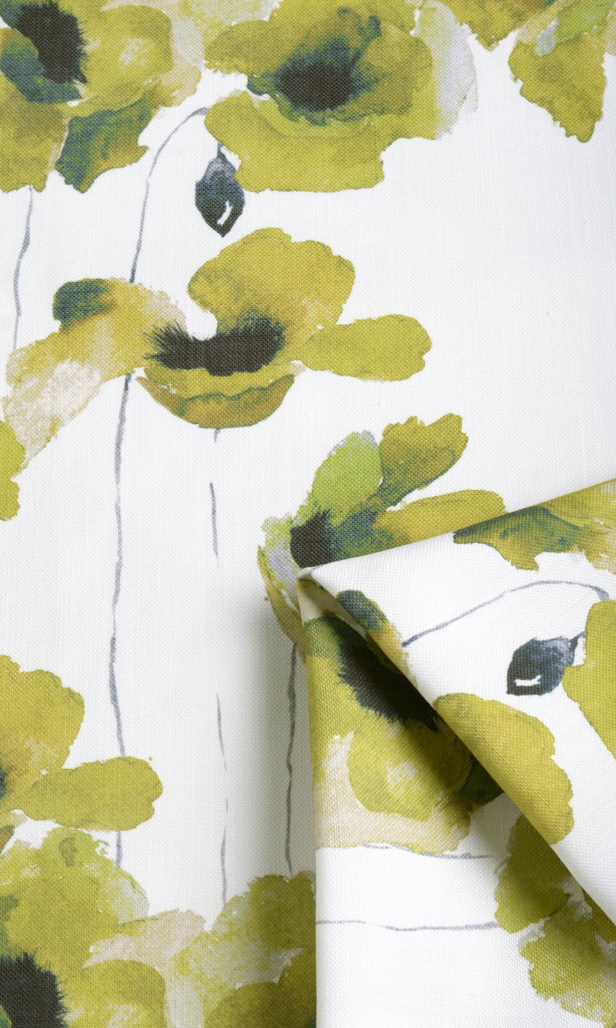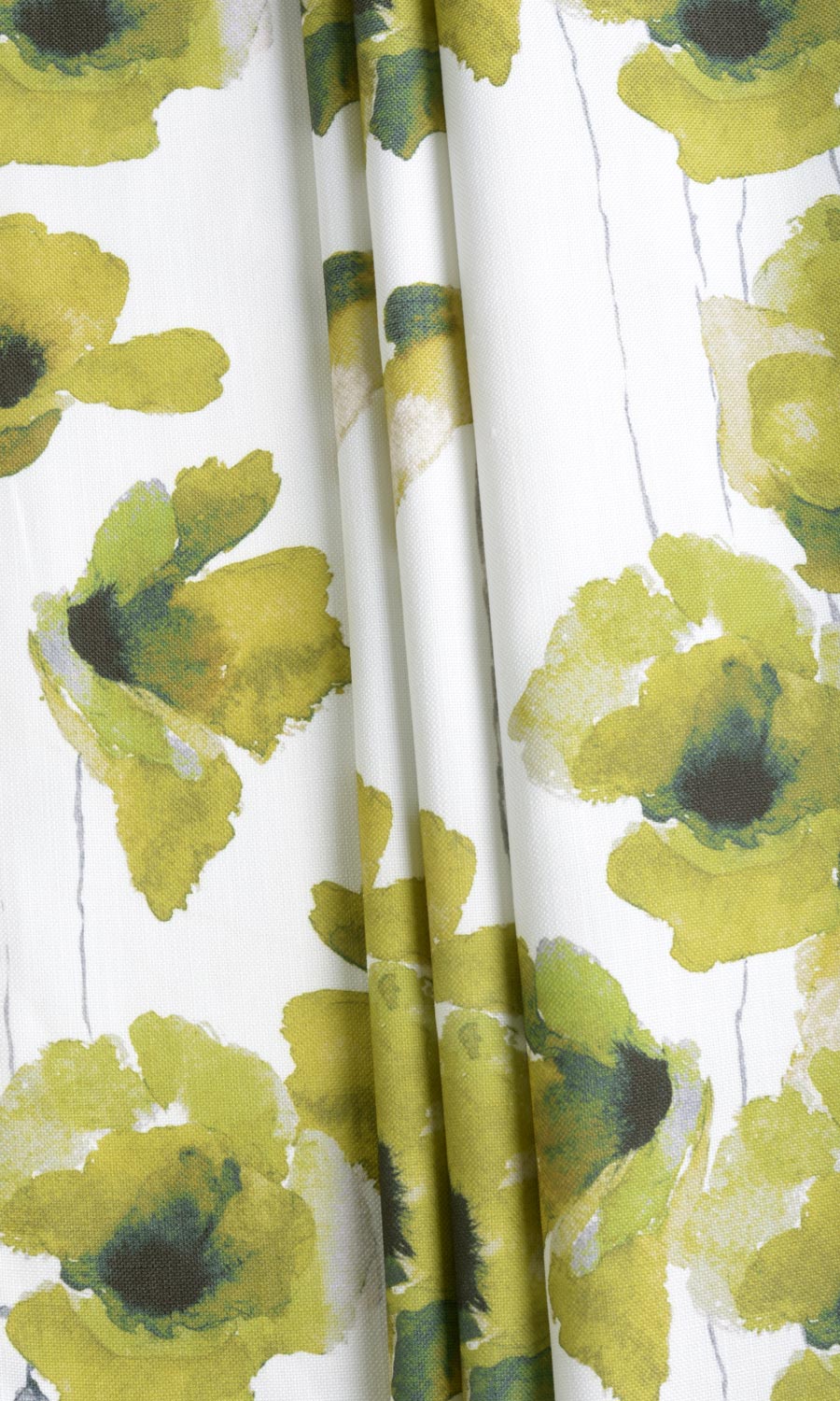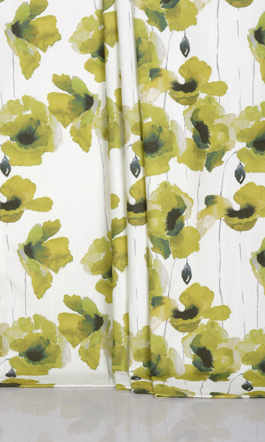 Grand watercolor sketches of poppies on slender stems – a rare contemporary take on a traditional floral theme! The spirited color scheme of white and lime green, and the magnified scaling make window treatments in this fabric an out-and-out choice for spacious rooms! ‘Grasshopper’ presents a clever alternative to floral wallpapers if you don’t want the garden theme centerstage all the time.