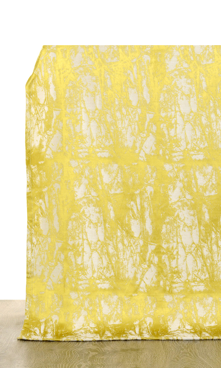Bored of prints, weaves, jacquards, textures and whatnot? Want a drapery fabric option that’s unconventional yet utterly eye-catching? Check out Gravar. This yellow fabric is a viscose rich blend for smooth natural look. The metallic paint color effect makes it an unusual and stand-out choice.