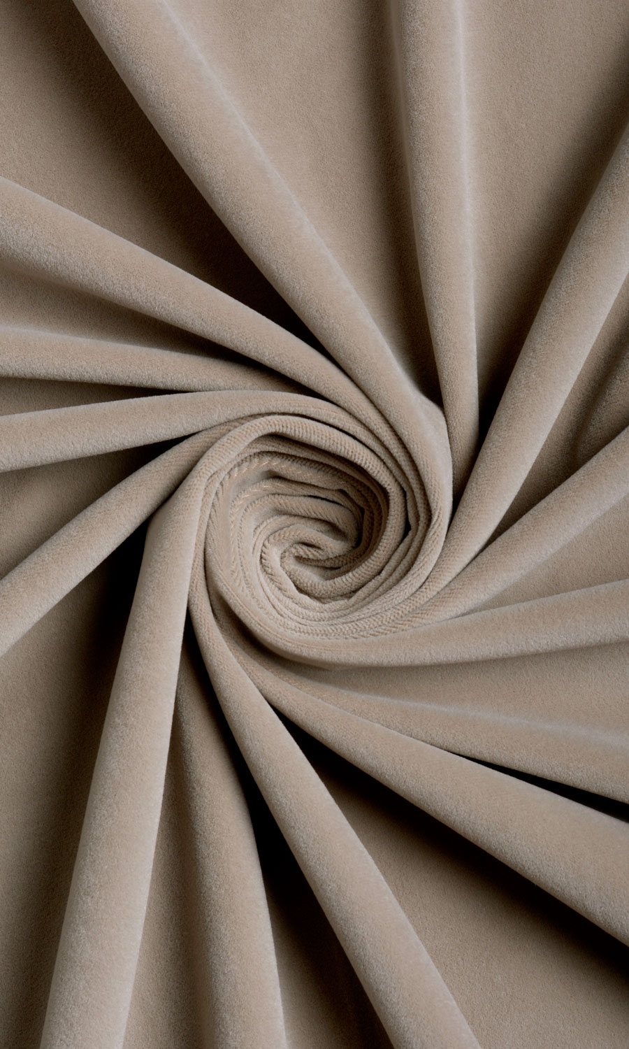 Give an organic vibe to your home with window treatments in this taupe velvet. With immense versatility to blend with many hues, brown curtains and roman shades present a great opportunity for room styling. Dense naps translate light to various versions of taupe, inviting touch to experience the tactility of this plush fabric. Our stylists recommend sewing this monochrome lovely in architectural styles such as pinch pleated drapes and relaxed roman shades.