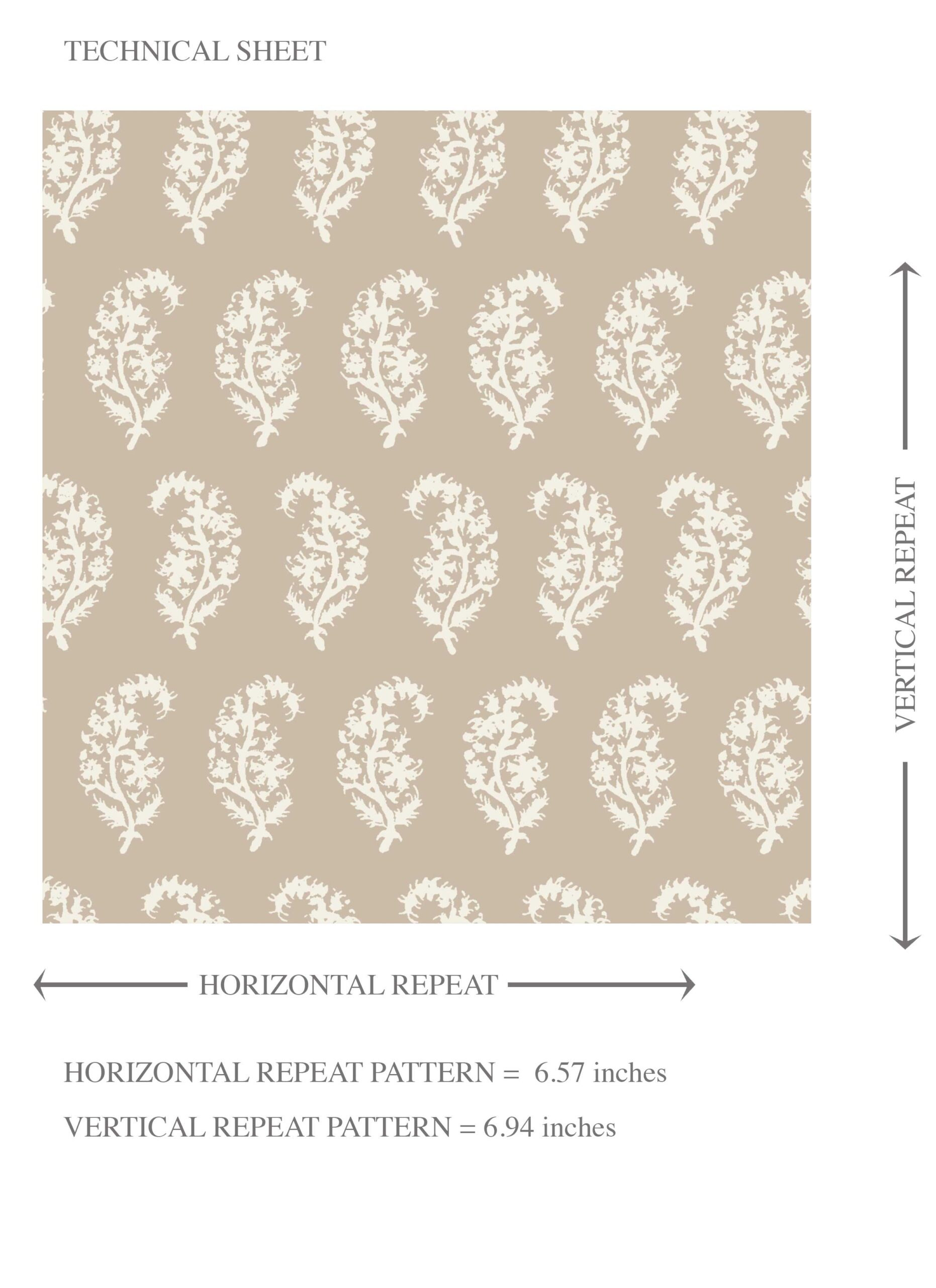 NON-PASTED: ‘Guamal’ is an unpasted wallpaper installed by applying adhesive paste (not provided by us, but easy to source) to the wall. While peel-and-stick papers do not leave much room to change the paper’s position once you start applying it, the traditional, non-pasted application is more forgiving, allowing for better positioning when matching patterns.