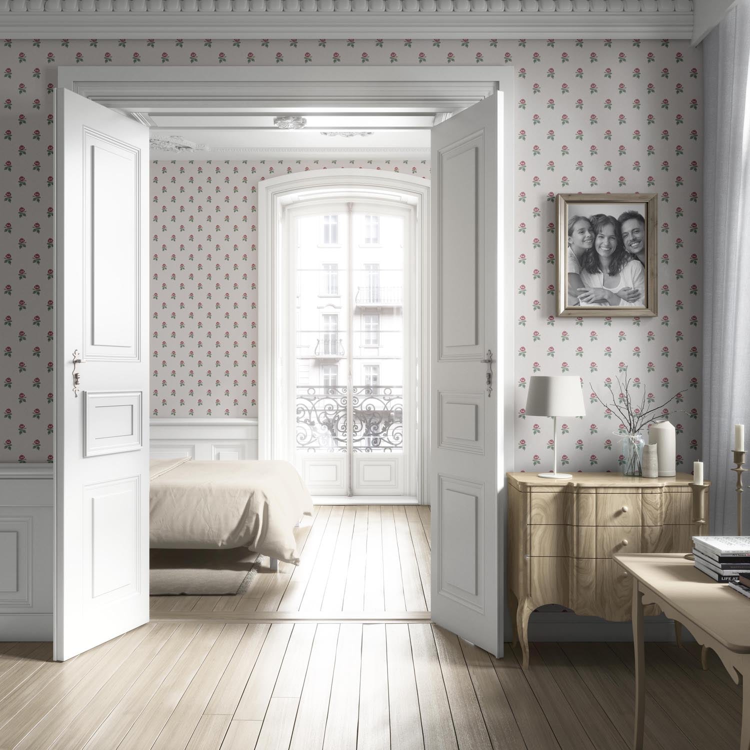NON-PASTED: ‘Guarda’ is an unpasted wallpaper installed by applying adhesive paste (not provided by us, but easy to source) to the wall. While peel-and-stick papers do not leave much room to change the paper’s position once you start applying it, the traditional, non-pasted application is more forgiving, allowing for better positioning when matching patterns.