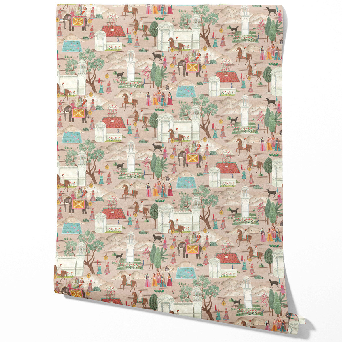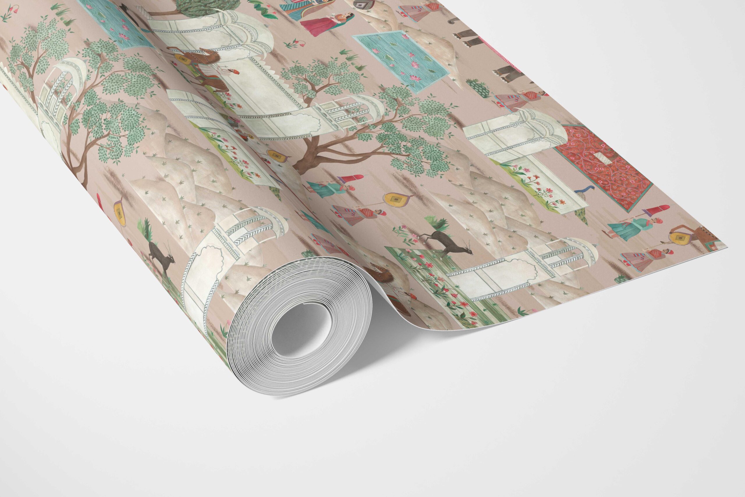 NON-PASTED: ‘Gulbiya’ is an unpasted wallpaper installed by applying adhesive paste (not provided by us, but easy to source) to the wall. While peel-and-stick papers do not leave much room to change the paper’s position once you start applying it, the traditional, non-pasted application is more forgiving, allowing for better positioning when matching patterns.