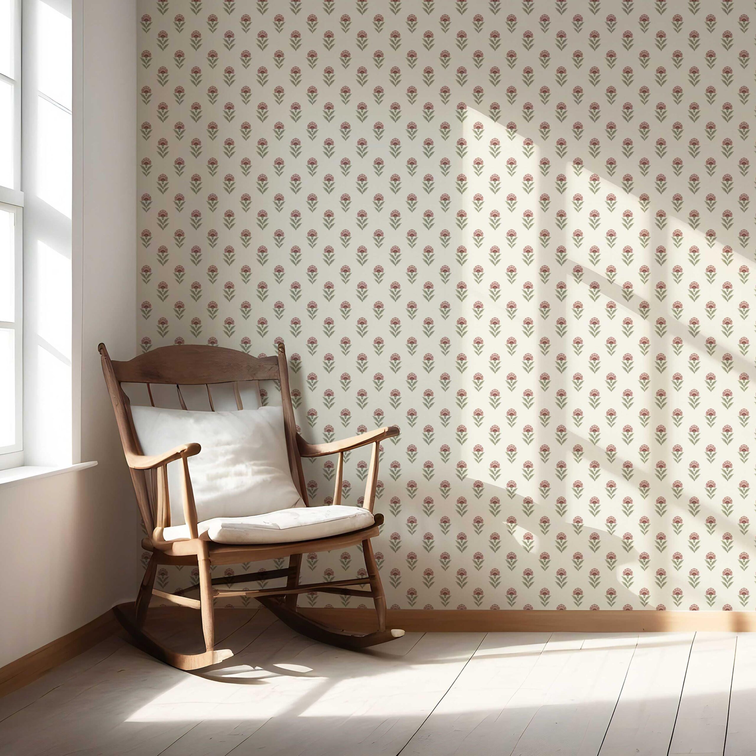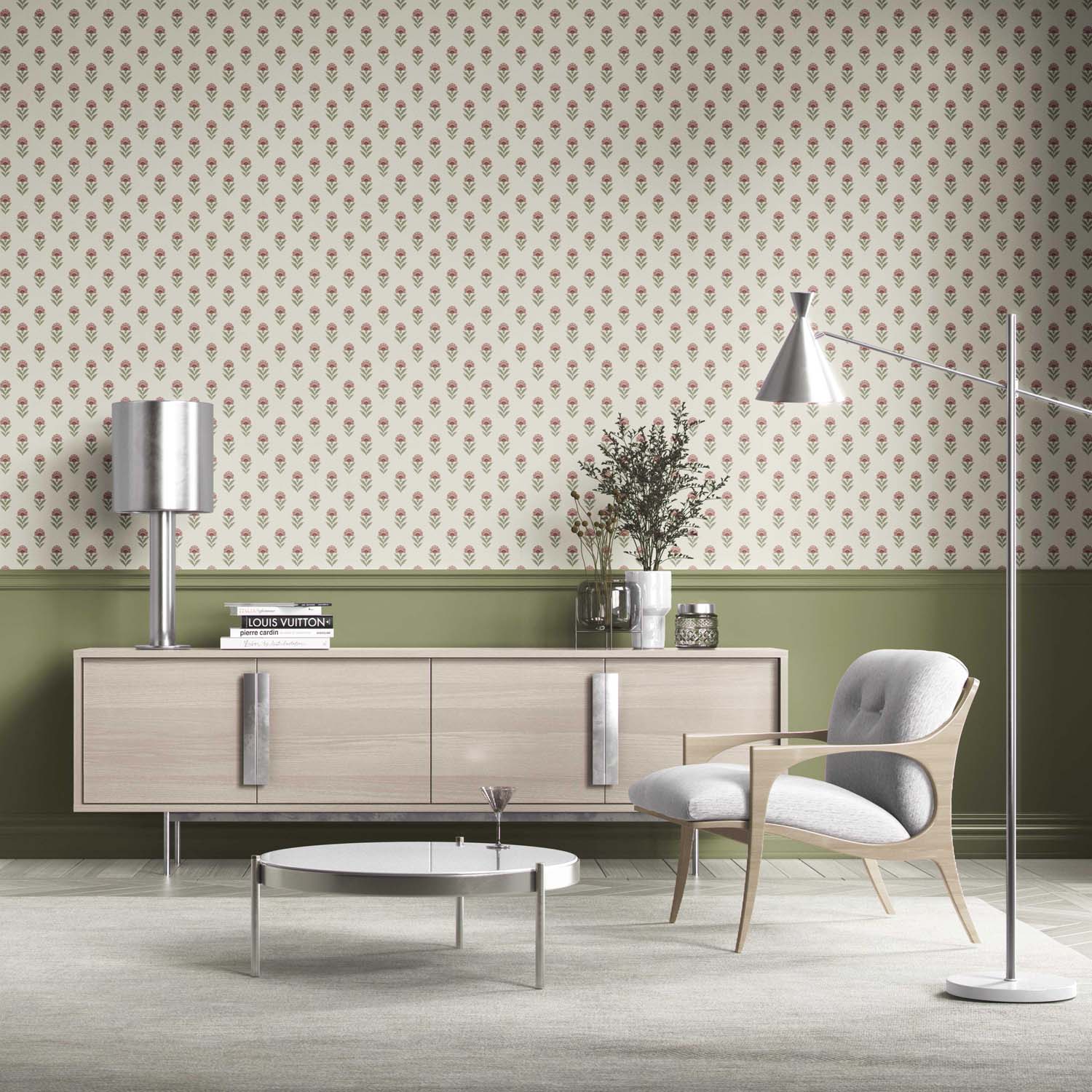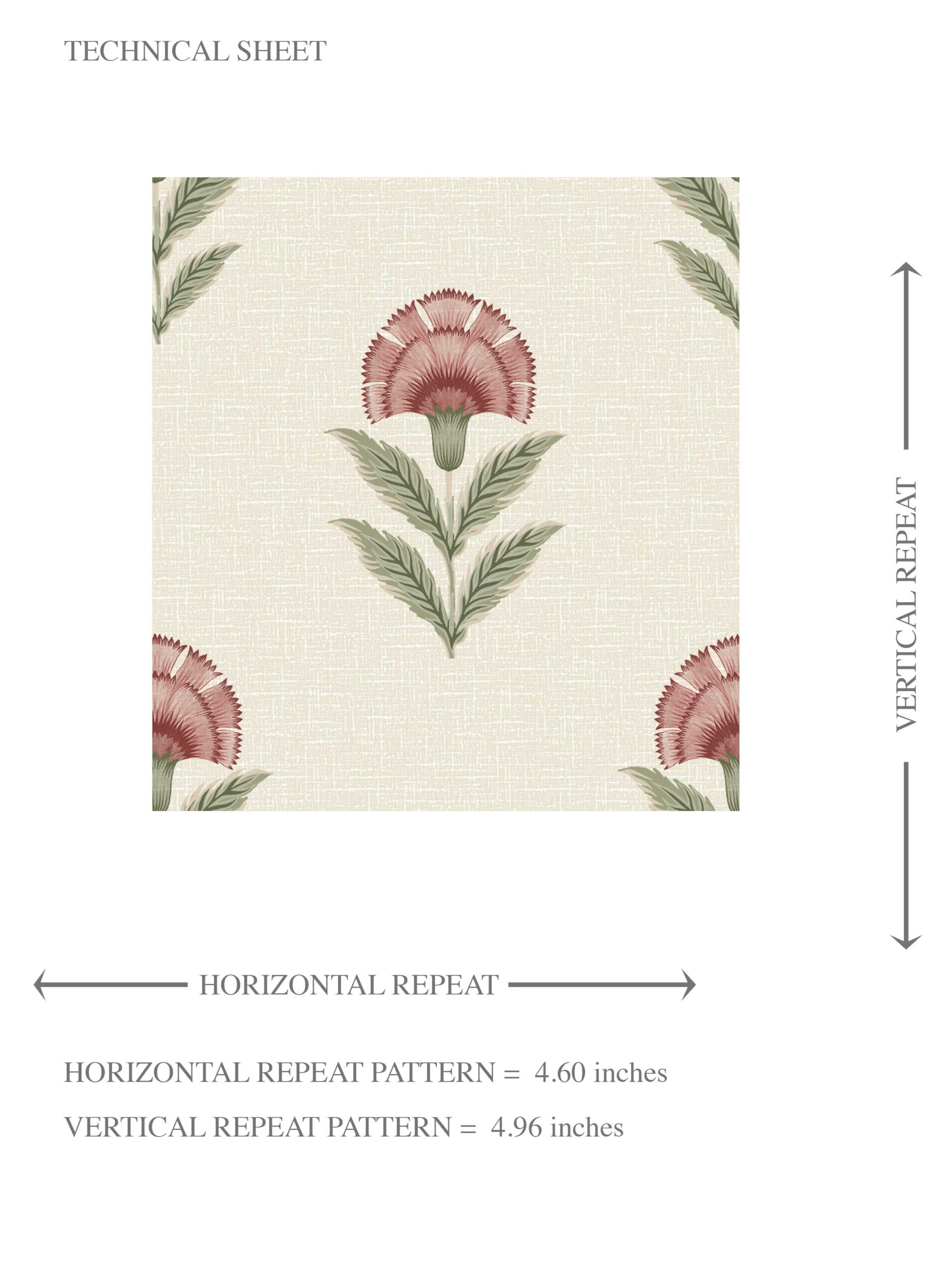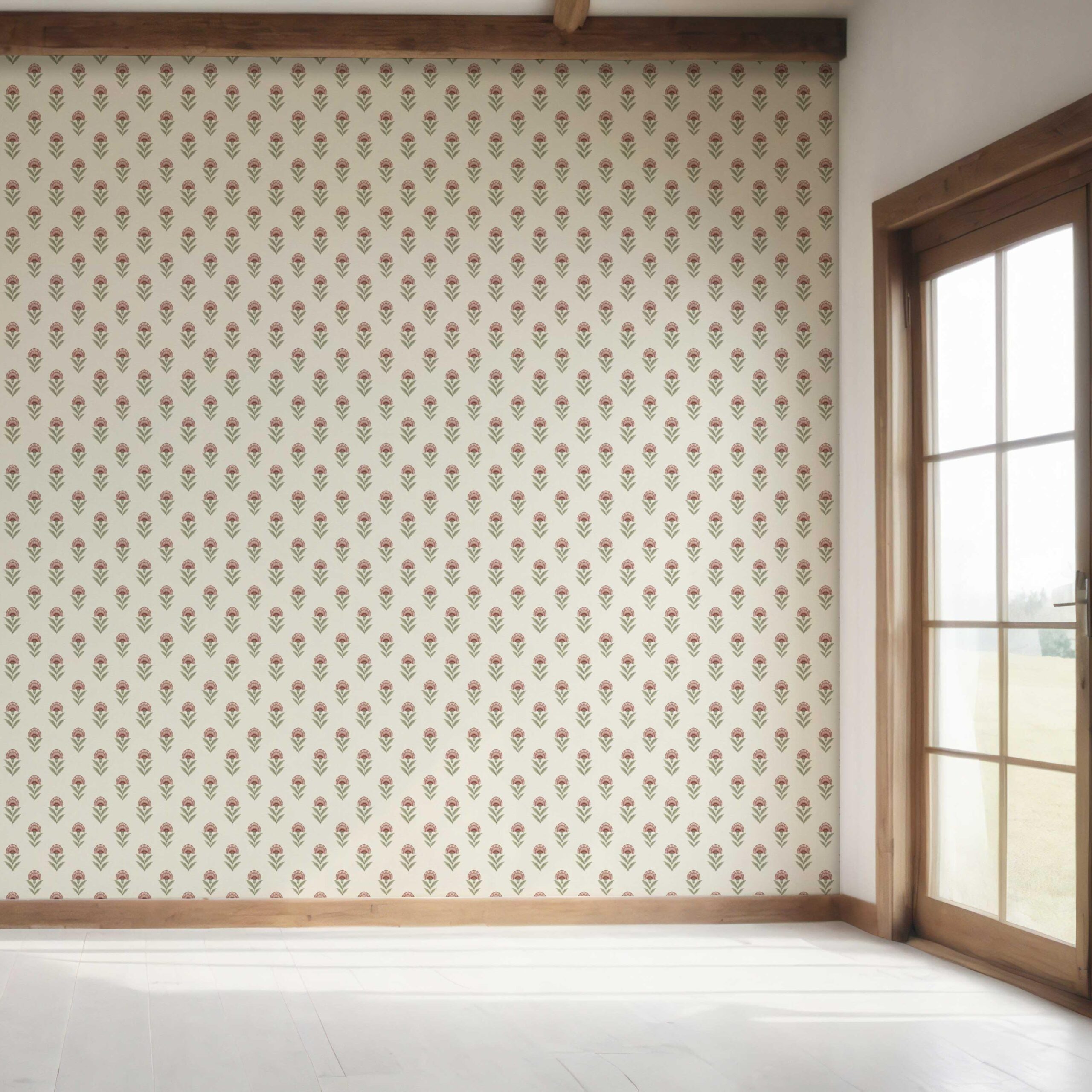 NON-PASTED: ‘Habba’ is an unpasted wallpaper installed by applying adhesive paste (not provided by us, but easy to source) to the wall. While peel-and-stick papers do not leave much room to change the paper’s position once you start applying it, the traditional, non-pasted application is more forgiving, allowing for better positioning when matching patterns.