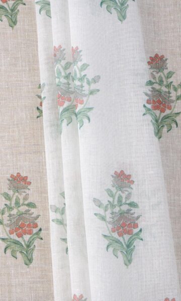 Epitome of floral allure! Exemplar of gracefulness and daintiness! Munchkin floral sprigs in tender shades of pink and green on a gauzy cream backdrop make a winsome visual treat in Hakoba. It can make your boudoir dreamy, your bohemian sweet digs a true bliss, and guest bedroom a wanton escape. Pair with solid pink drapes and amplify that enchanting gorgeousness.