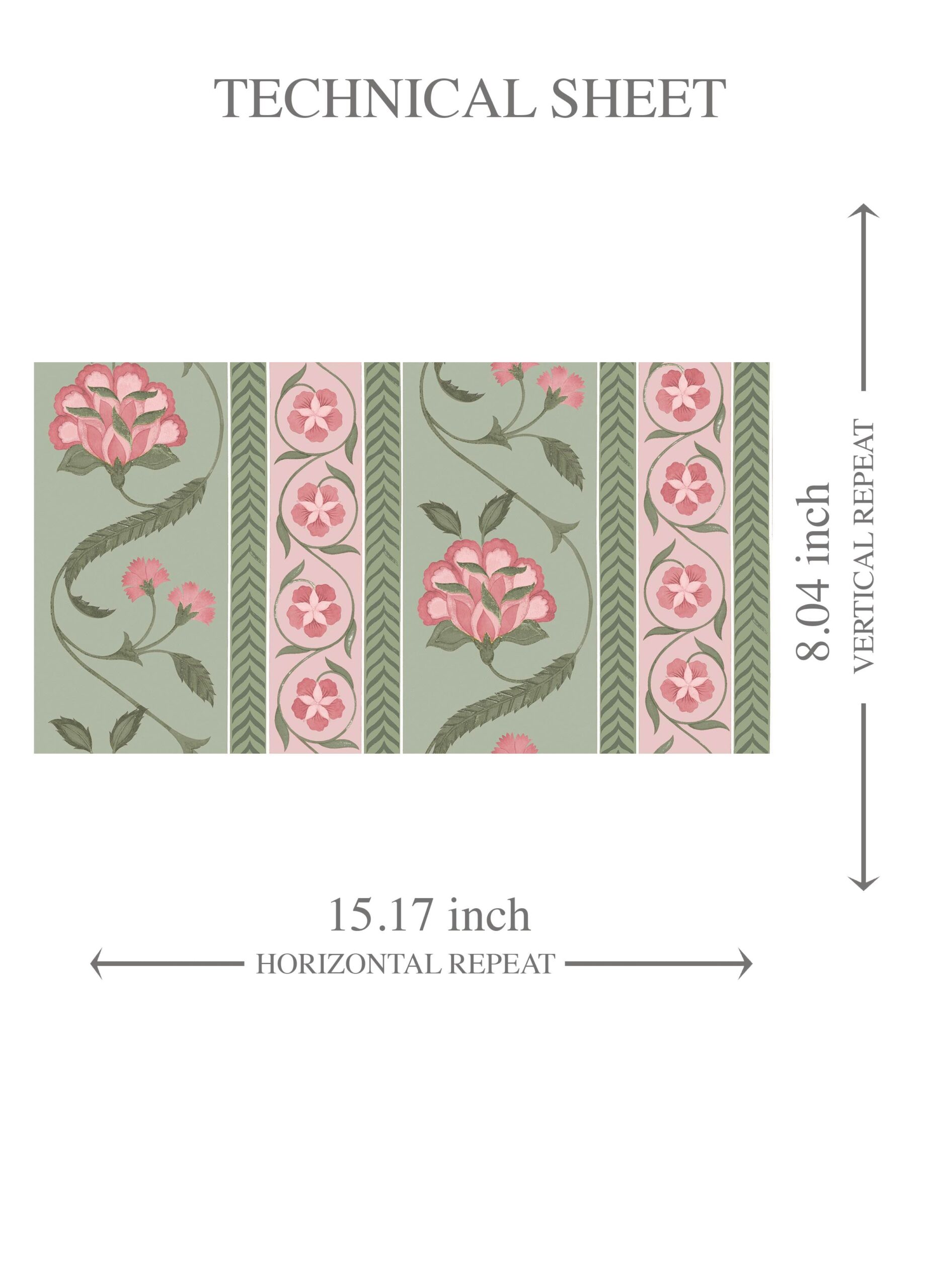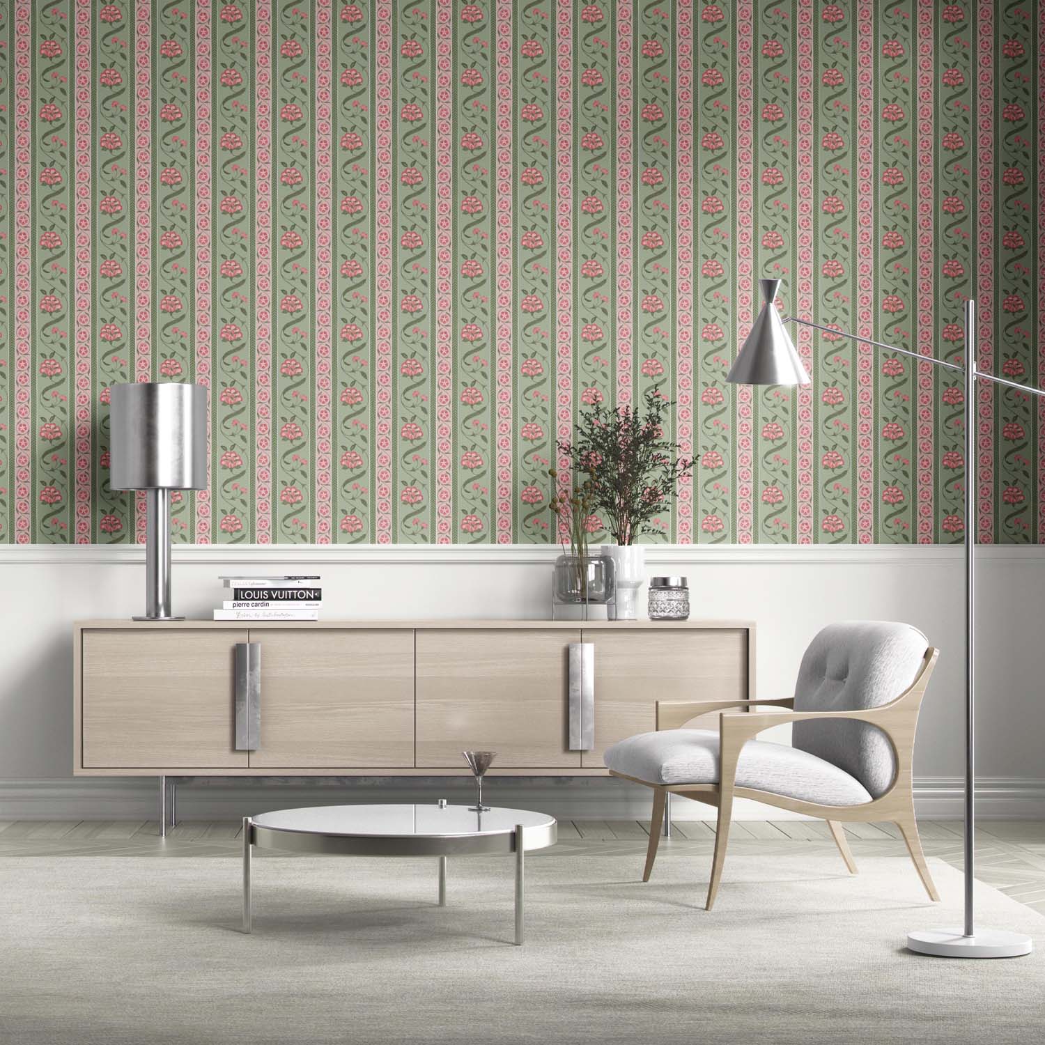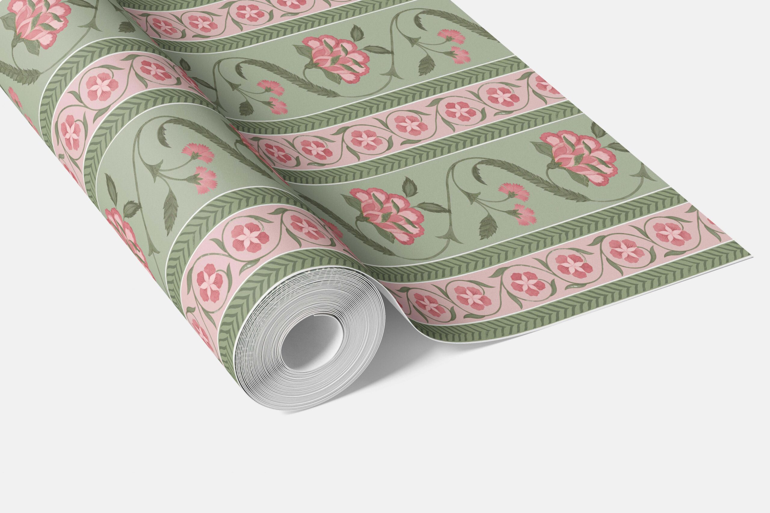 ‘Hallstatt’ Floral Botanical Striped Wallpaper (Green/ Pink)