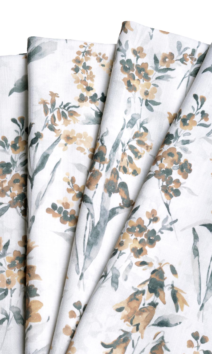 Enliven your space with organic beauty in exquisitely designed floral draperies and roman shades in this lovely fabric. The refreshing nature-inspired pattern designed in white, beige, and brown picture frames a prosperous spring garden. Window treatments in this gorgeous fabric sync well with warm color palettes, and patterns like pinstripes, ginghams, and undersized plaids.
