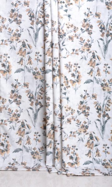 Enliven your space with organic beauty in exquisitely designed floral draperies and roman shades in this lovely fabric. The refreshing nature-inspired pattern designed in white, beige, and brown picture frames a prosperous spring garden. Window treatments in this gorgeous fabric sync well with warm color palettes, and patterns like pinstripes, ginghams, and undersized plaids.