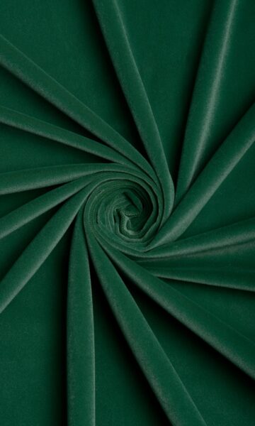 Rejuvenate your space with a splash of green. Window treatments in this emerald green velvet fabric promise a treat to the eye, an organic nature-inspired touch. As light weaves a thousand tales on the plush naps of this luxurious velvet, green exudes the energy and coolness of verdant valleys. This plain fabric is best dressed in pinch pleated drapes and relaxed roman shades benefitting from the architectural construction of these styles.