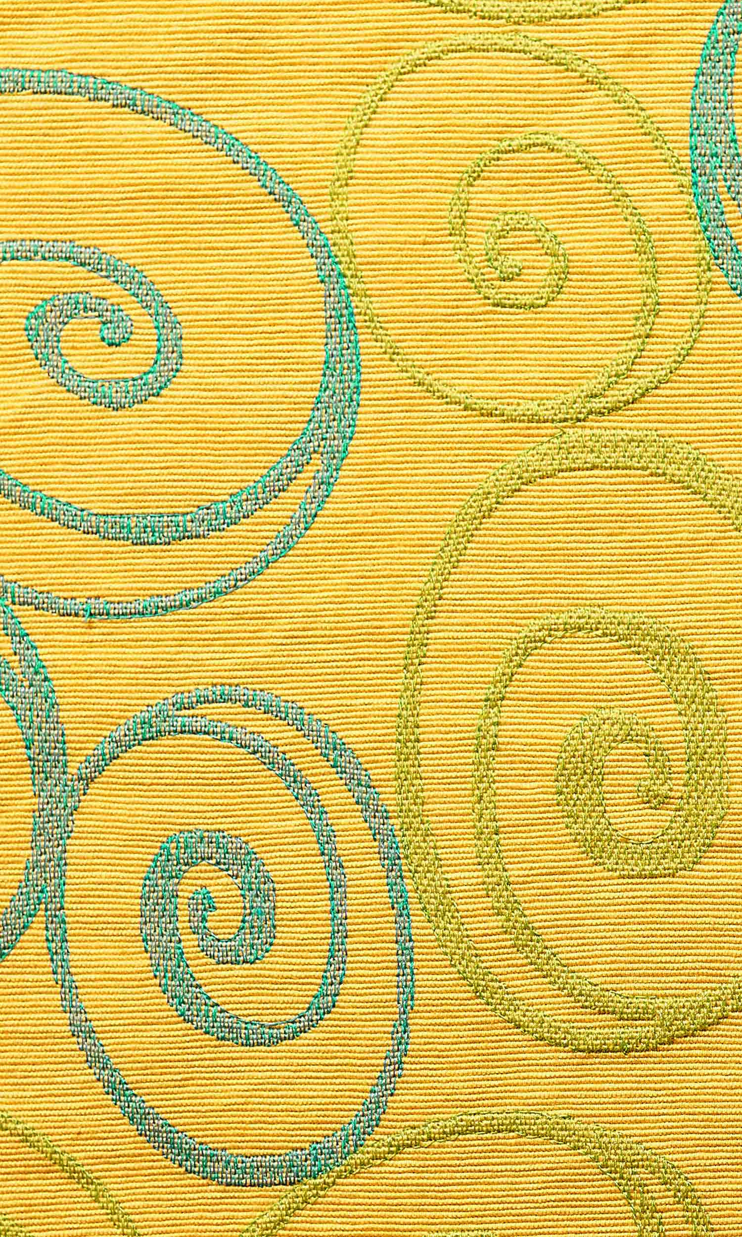 Featuring more than a hint of color and joy, this fabric brings cheer wherever it’s hung. A sunny yellow with blue swirls, it serves as an excellent accent backdrop to any blue-led decor.