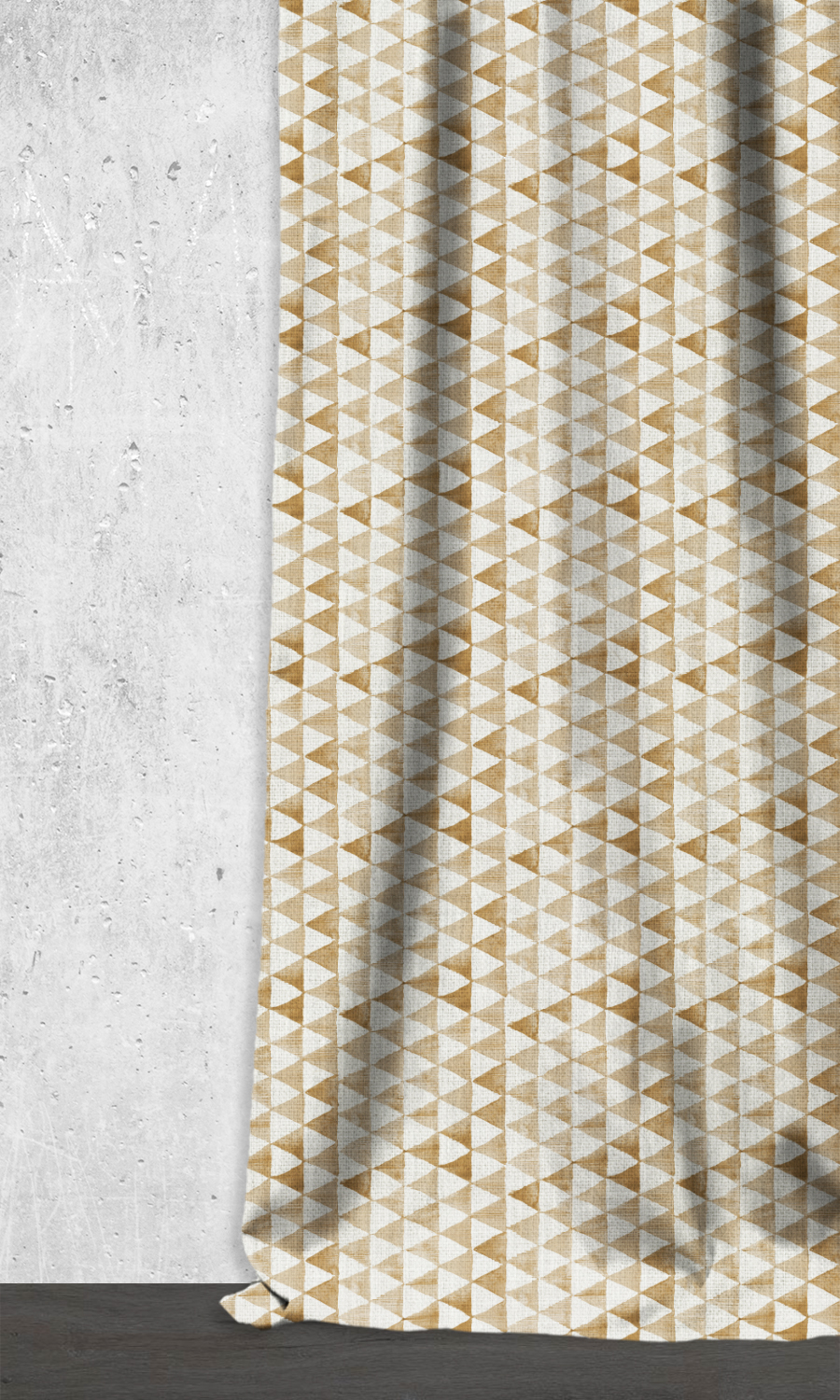 ‘Hot Mocha’ Triagonal Print Custom Drapes (Eggshell White/ Brown)