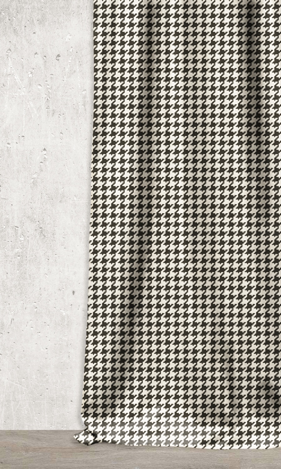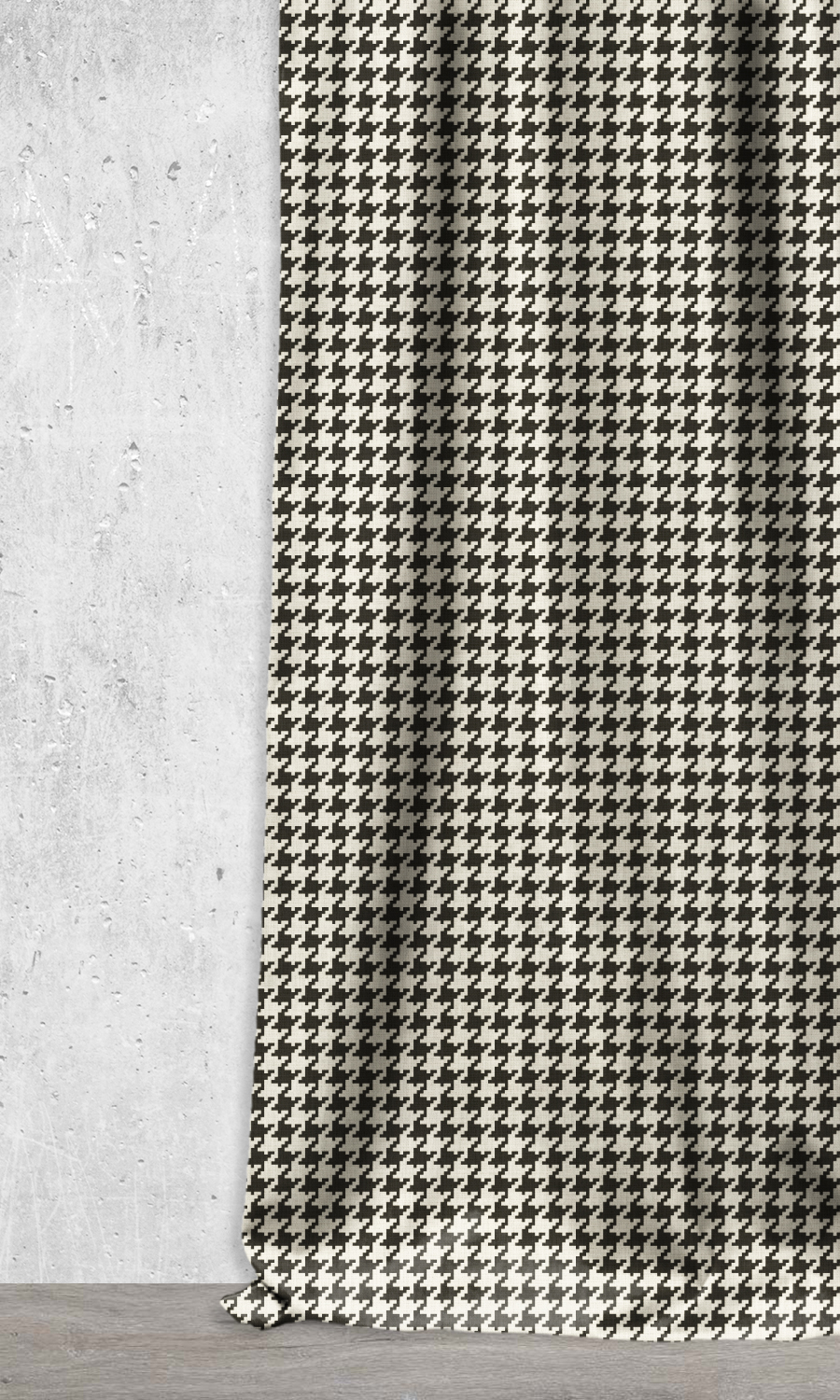 ‘Houndstooth Jamboree’ Geo-Print Custom Curtains (Black/ Ivory)