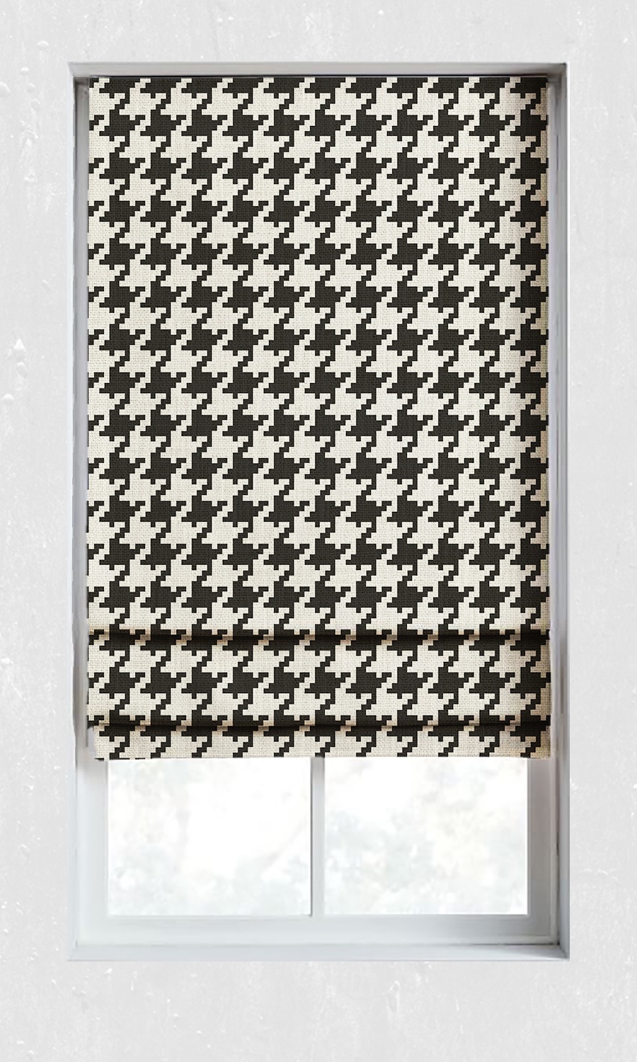 With its distinctive update on the classic houndstooth pattern, this flatweave fabric is a delightful option for both traditional and contemporary-styled settings. Its neutral shades of black and white make for pairing ease and will complement both neutral and colorific palettes. We suggest featuring this fabric with casual style headings to achieve a modern effect or with pinch pleats for a more traditional look. This fabric is also a great option for any style roman shades. Its understated elegance promises to elevate your existing decor with a chic style upgrade.