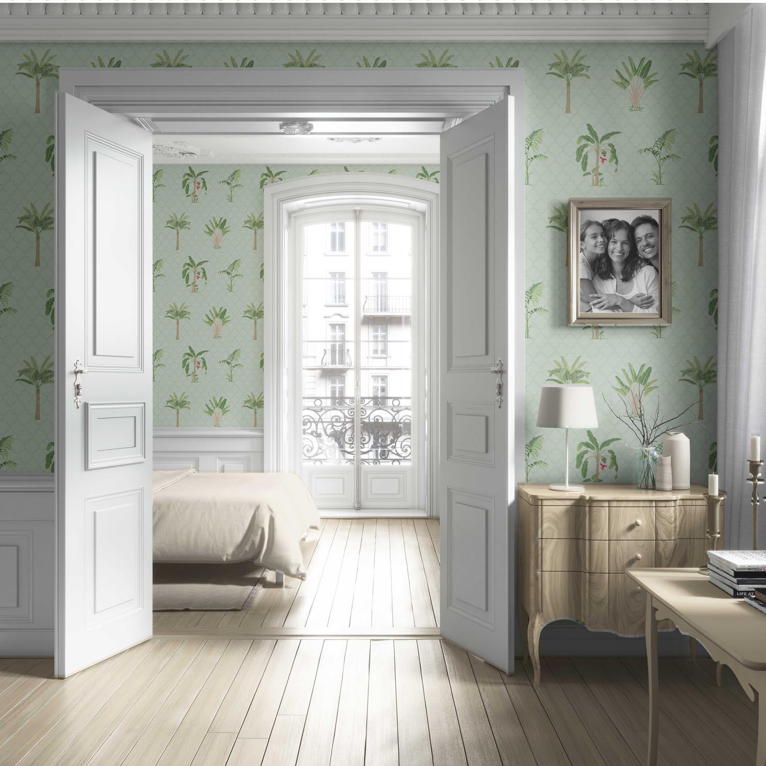 NON-PASTED: ‘Imperia’ is an unpasted wallpaper installed by applying adhesive paste (not provided by us, but easy to source) to the wall. While peel-and-stick papers do not leave much room to change the paper’s position once you start applying it, the traditional, non-pasted application is more forgiving, allowing for better positioning when matching patterns.