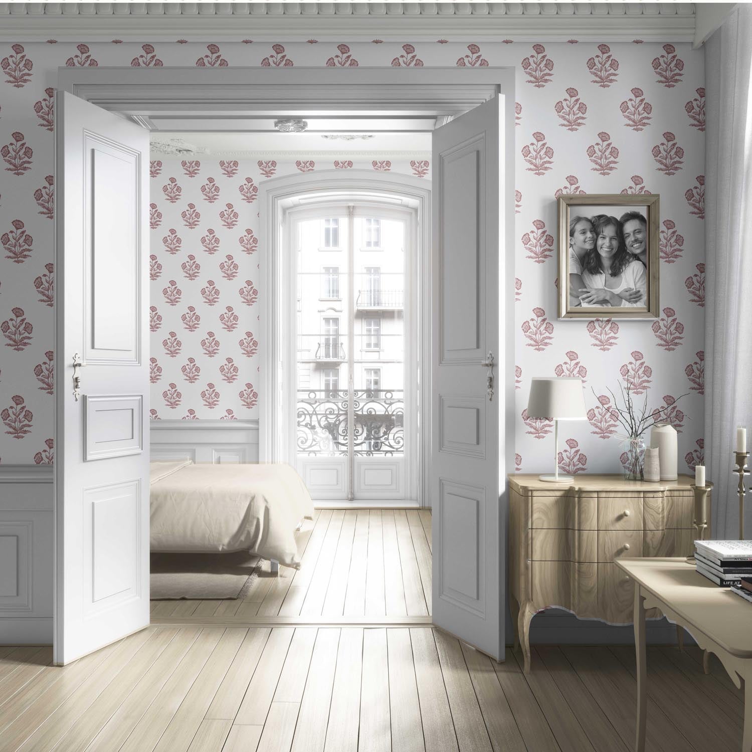 NON-PASTED: ‘Inaja’ is an unpasted wallpaper installed by applying adhesive paste (not provided by us, but easy to source) to the wall. While peel-and-stick papers do not leave much room to change the paper’s position once you start applying it, the traditional, non-pasted application is more forgiving, allowing for better positioning when matching patterns.