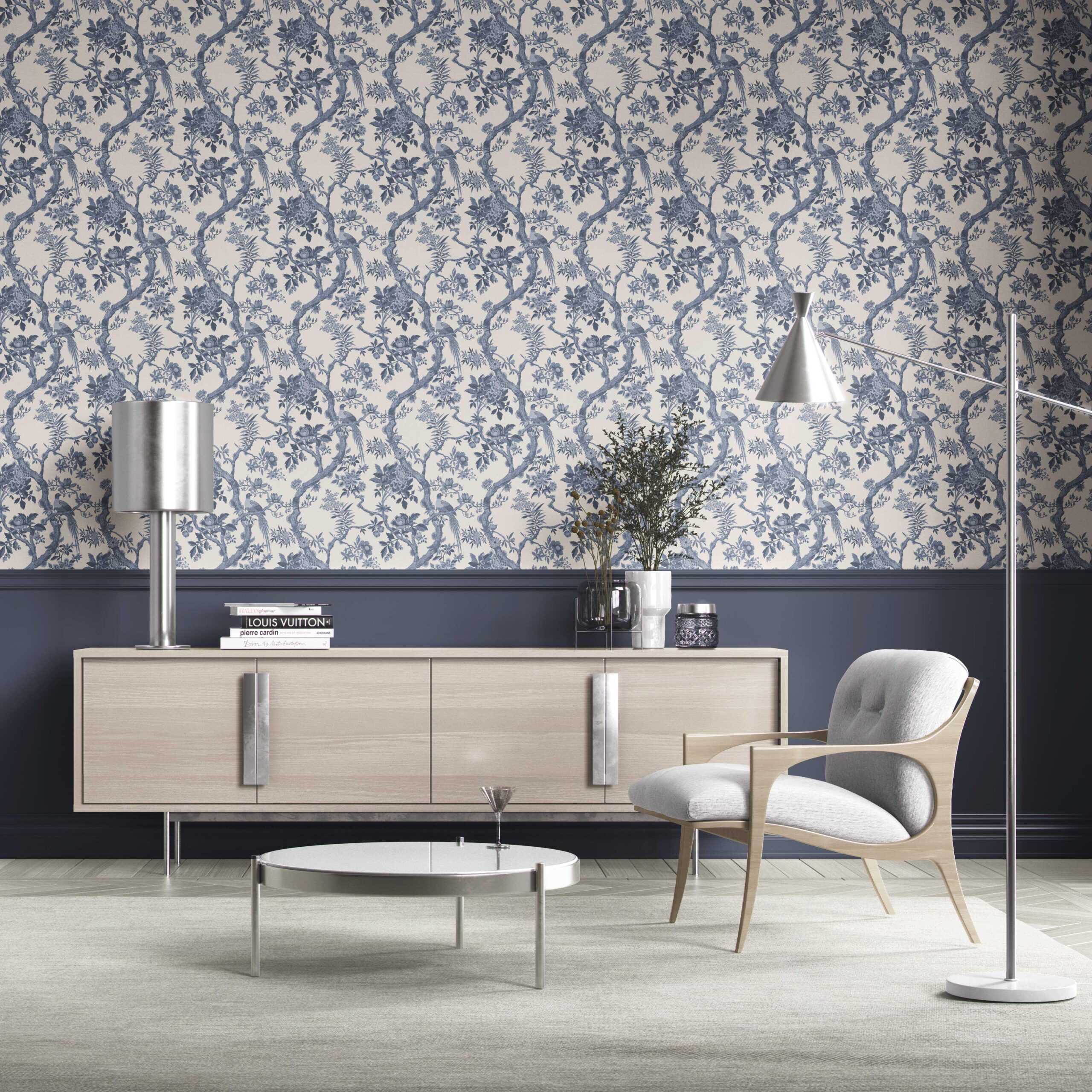 NON-PASTED: ‘Interlude’ is an unpasted wallpaper installed by applying adhesive paste (not provided by us, but easy to source) to the wall. While peel-and-stick papers do not leave much room to change the paper’s position once you start applying it, the traditional, non-pasted application is more forgiving, allowing for better positioning when matching patterns.