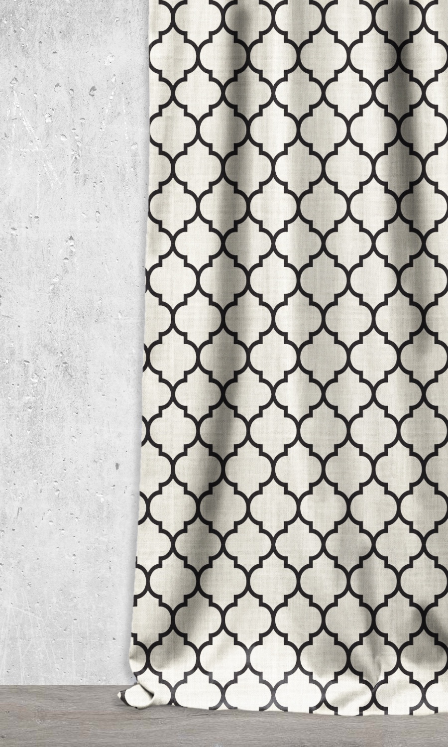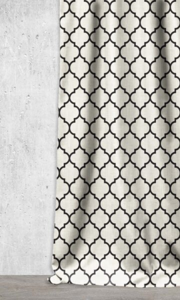 A stylistic interpretation of the classic Moroccan trellis tile pattern. Clean and geometric, it integrates ornate vintage with new age minimalism. The contemporary color palette of warm white and black enhances the understated yet unmistakably elegant appearance. We recommend this fabric for curtains as well as blinds. Also a good one for children’s rooms.