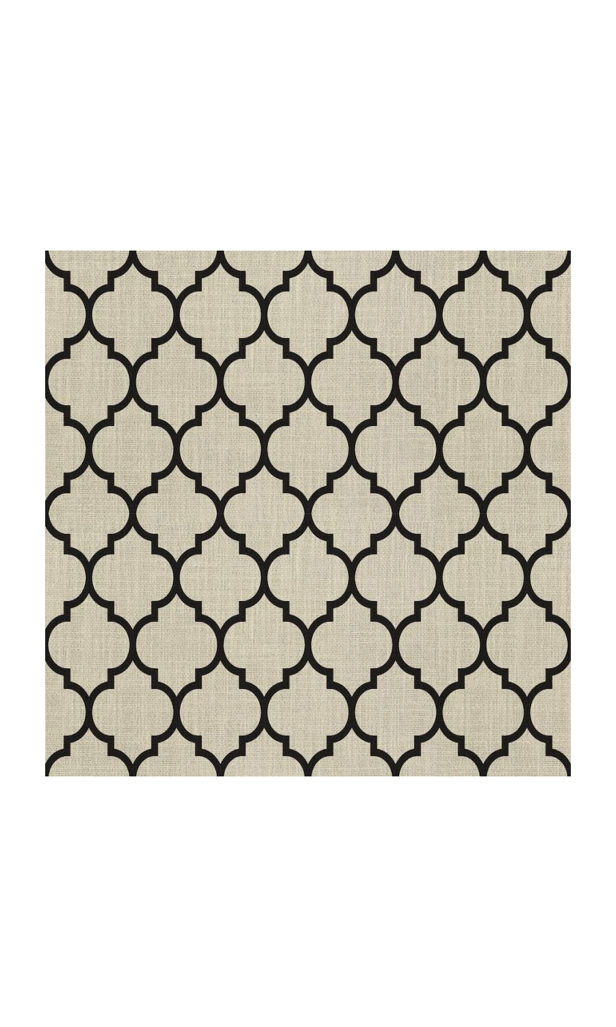 A stylistic interpretation of the classic Moroccan trellis tile pattern. Clean and geometric, it integrates ornate vintage with new age minimalism. The contemporary color palette of warm white and black enhances the understated yet unmistakably elegant appearance. We recommend this fabric for curtains as well as blinds. Also a good one for children’s rooms.