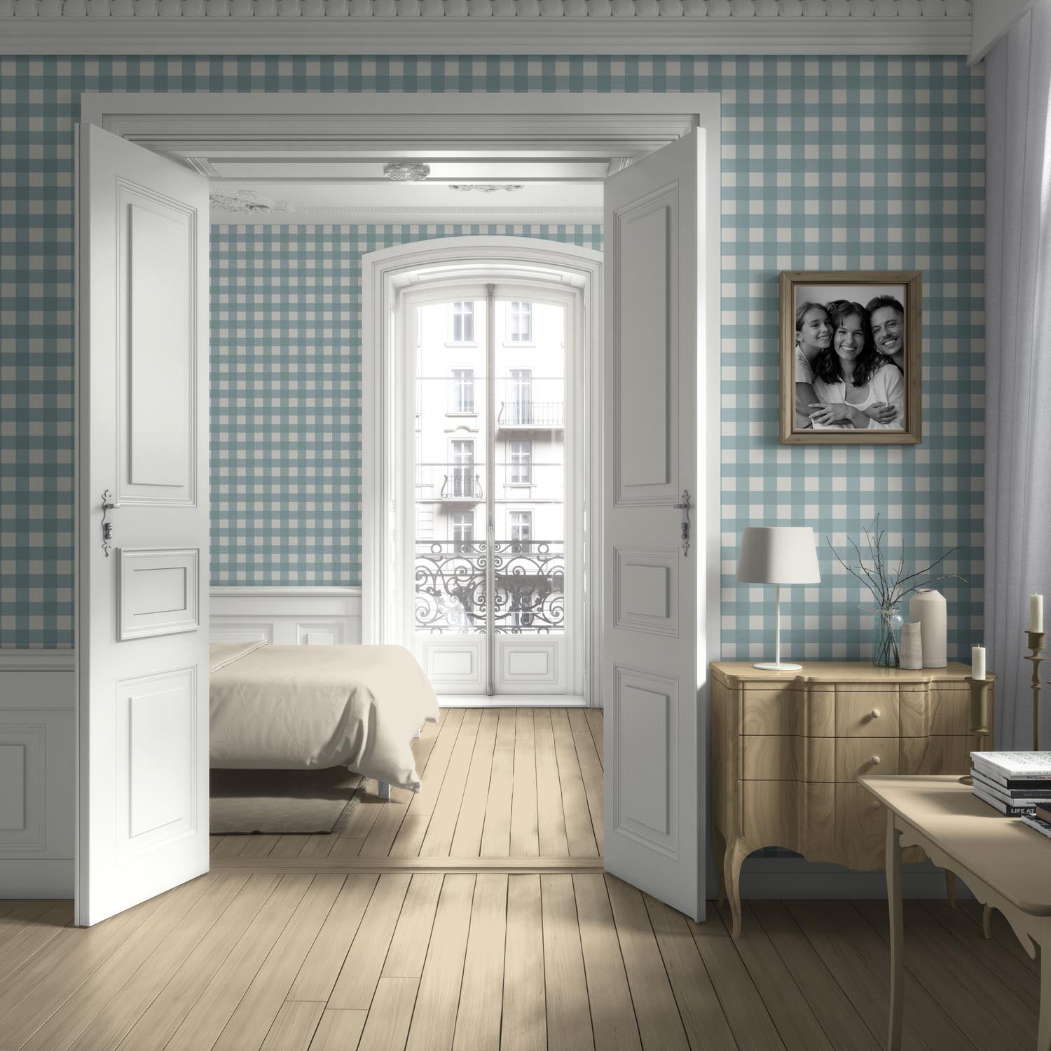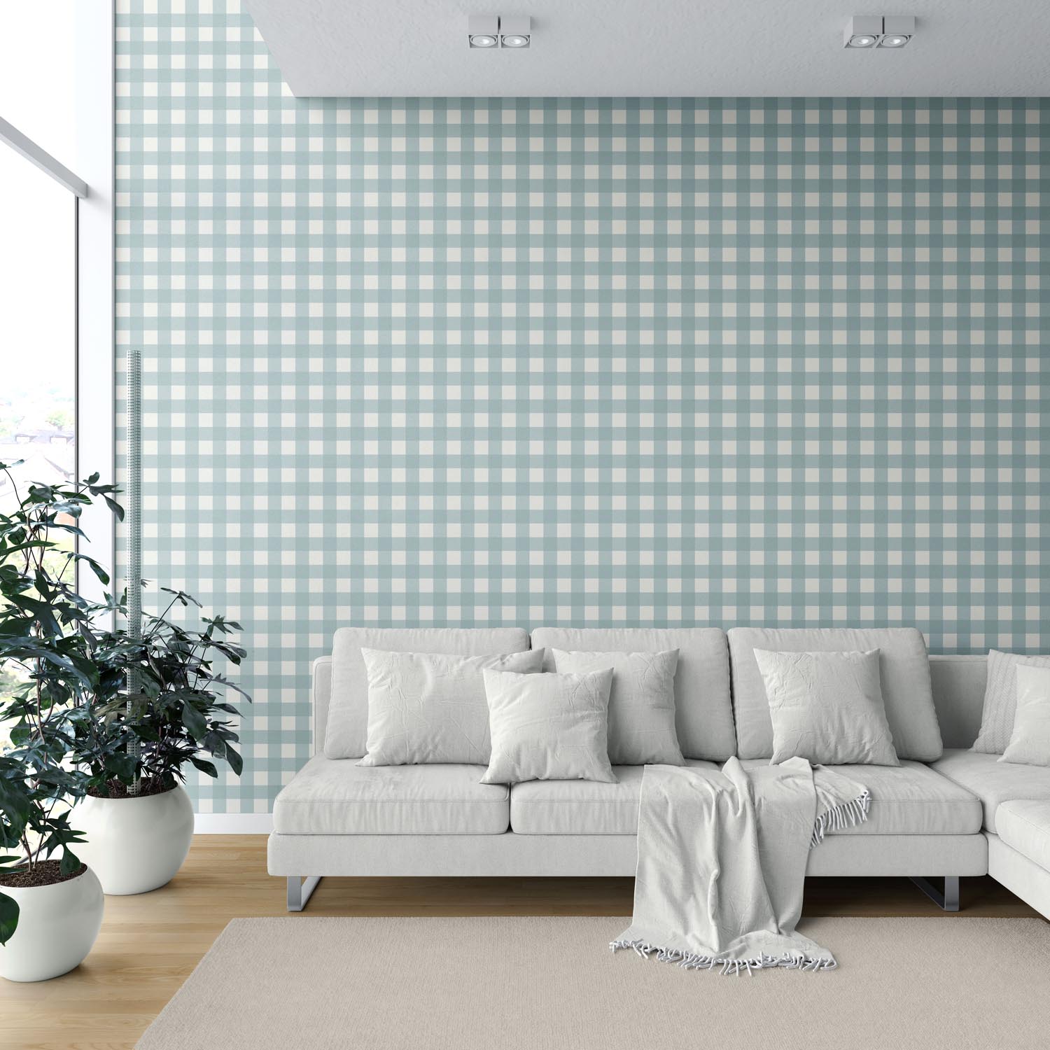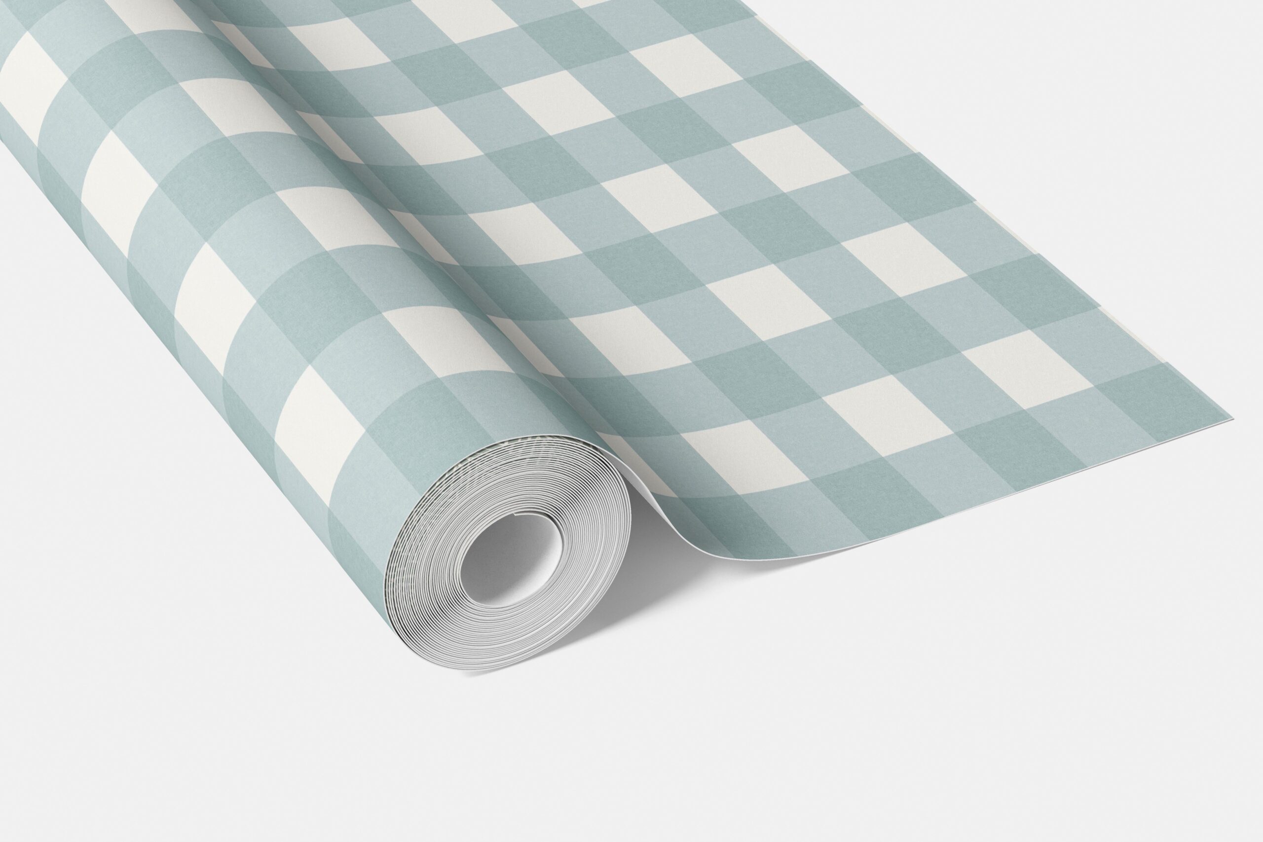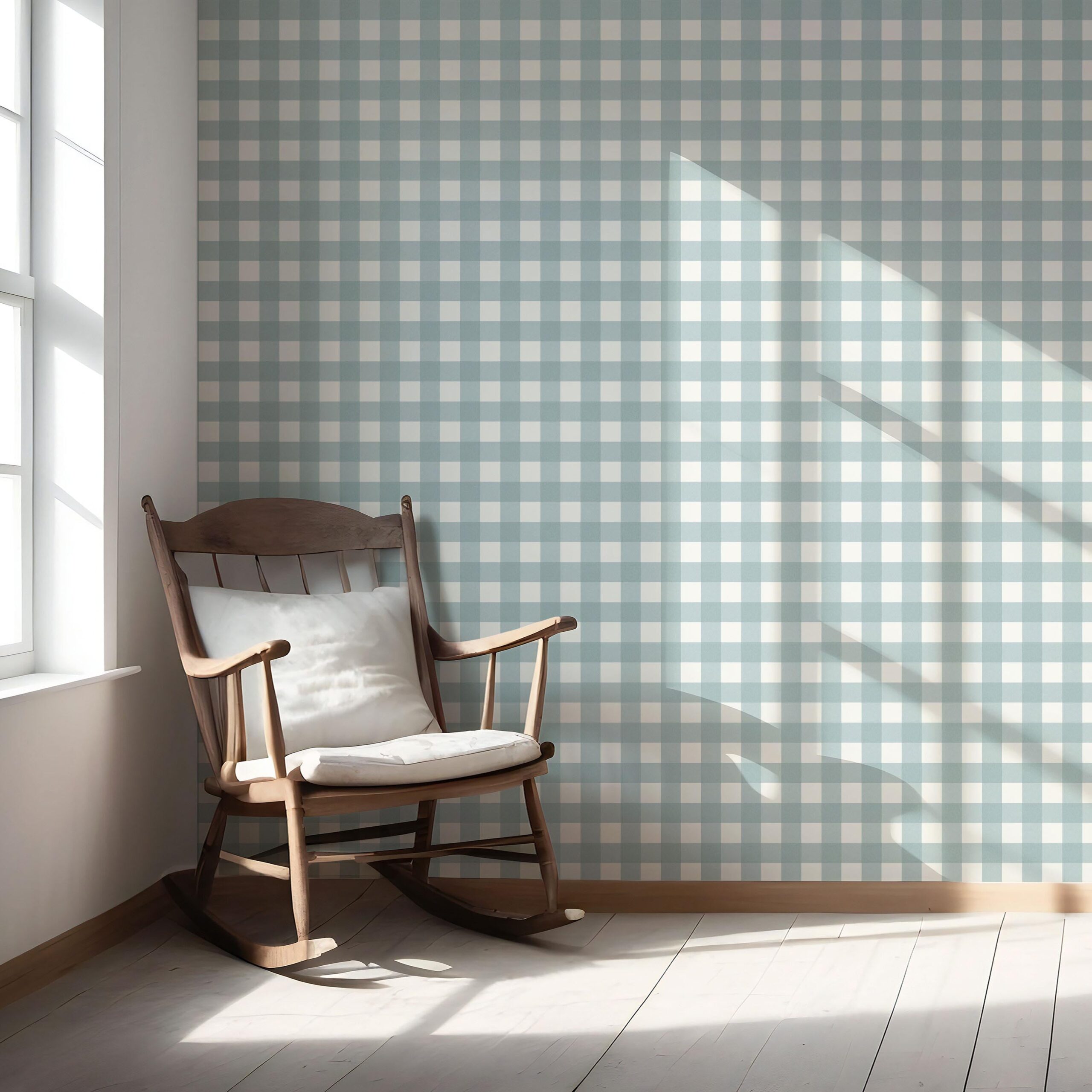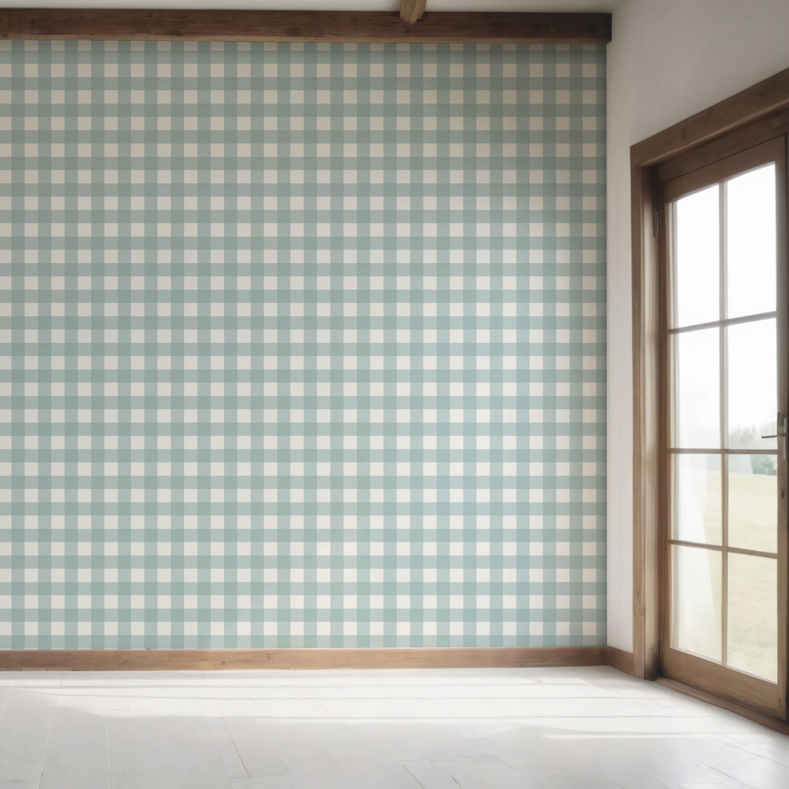 ‘Jack Pine’ Geometric Gingham Checkered Wallpaper (Seafoam Blue)