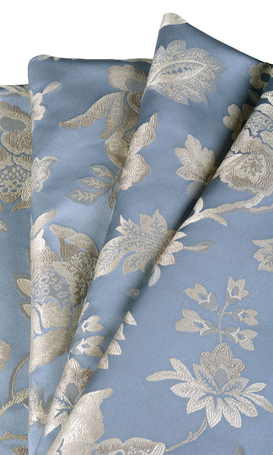 When you want your room to acquire a stately ambience, opt for this beautiful floral damask fabric. Its indigo blue backdrop is self patterned with palest gray-beige in fabulous floral pattern for a truly impressive look. We recommend pinched pleated curtain style for maximum impact.
