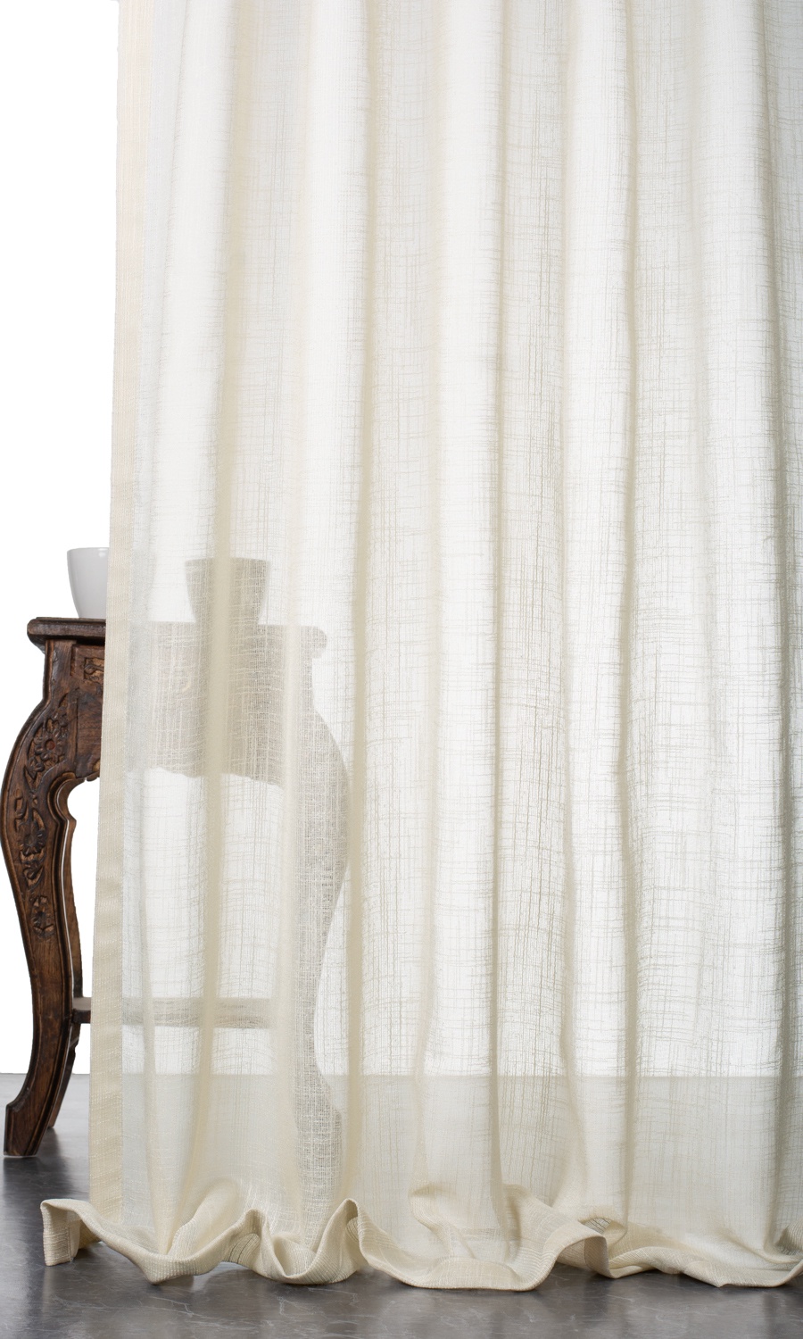 ‘Kaeline’ Textured Stripe Sheer Window Curtains (Almond Cream)