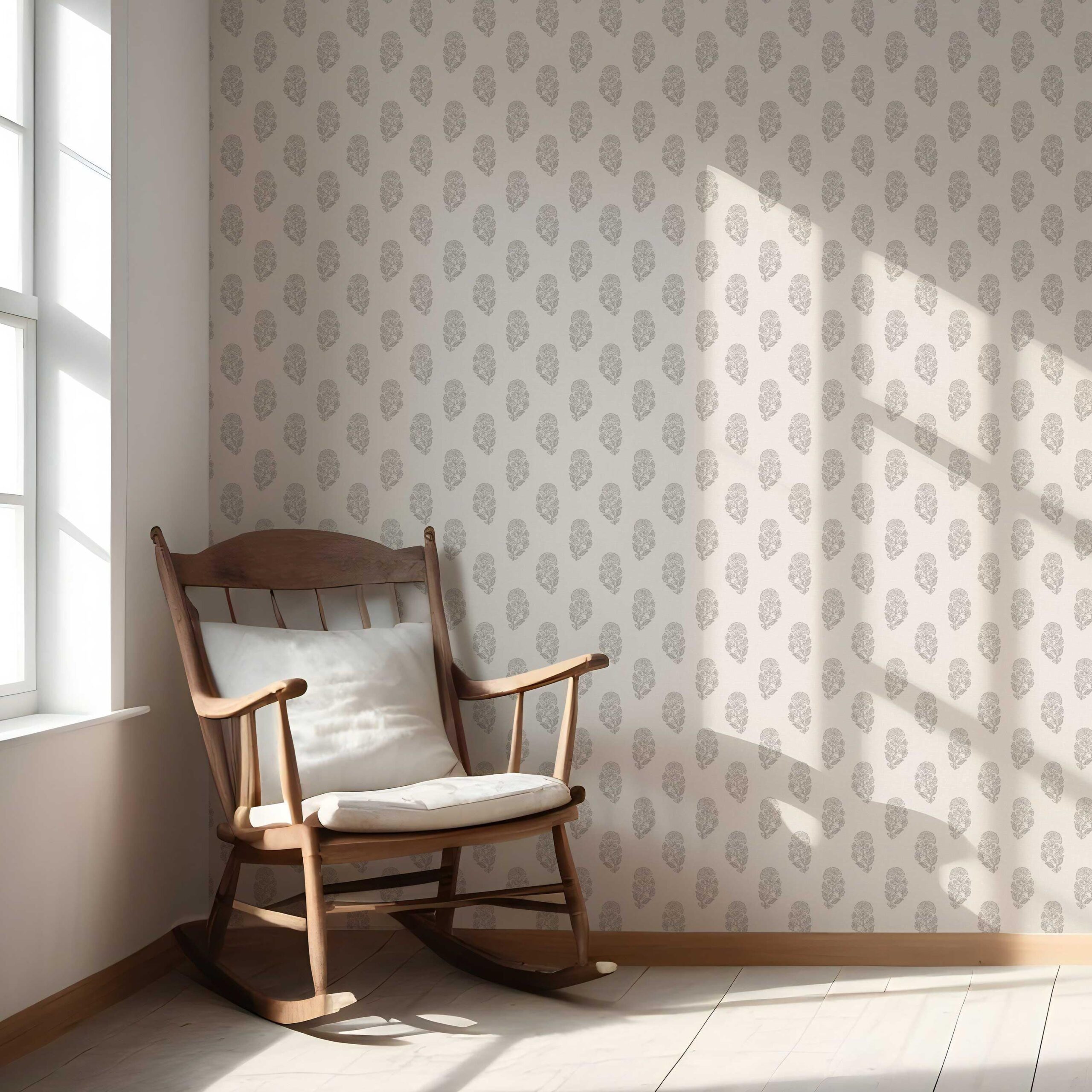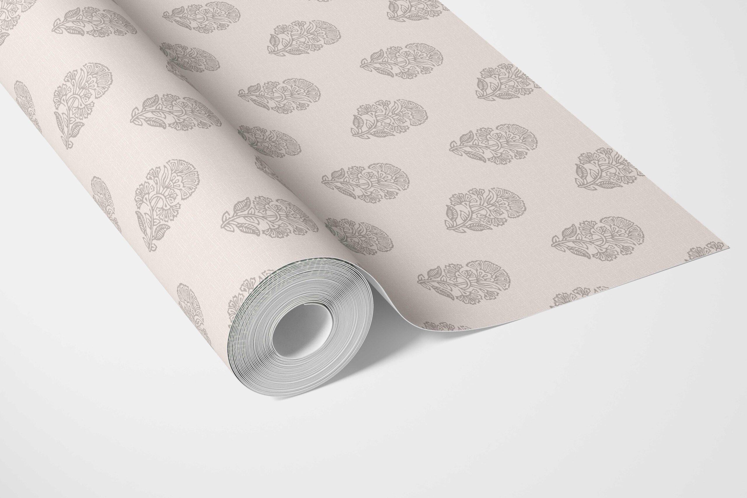 ‘Kahamun’ Neutral Botanical/ Floral Block Print Wallpaper (Gray/ Soft Taupe/ Cream)