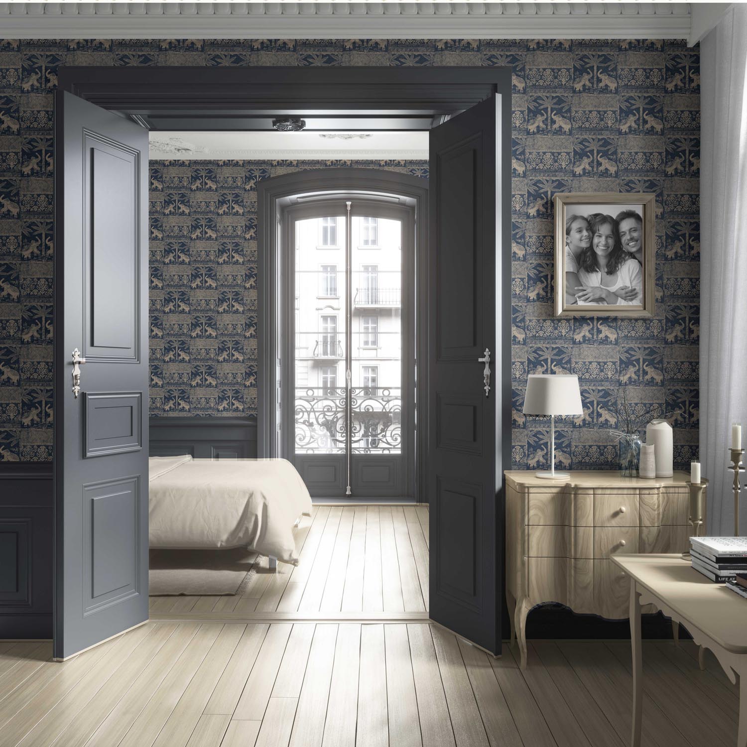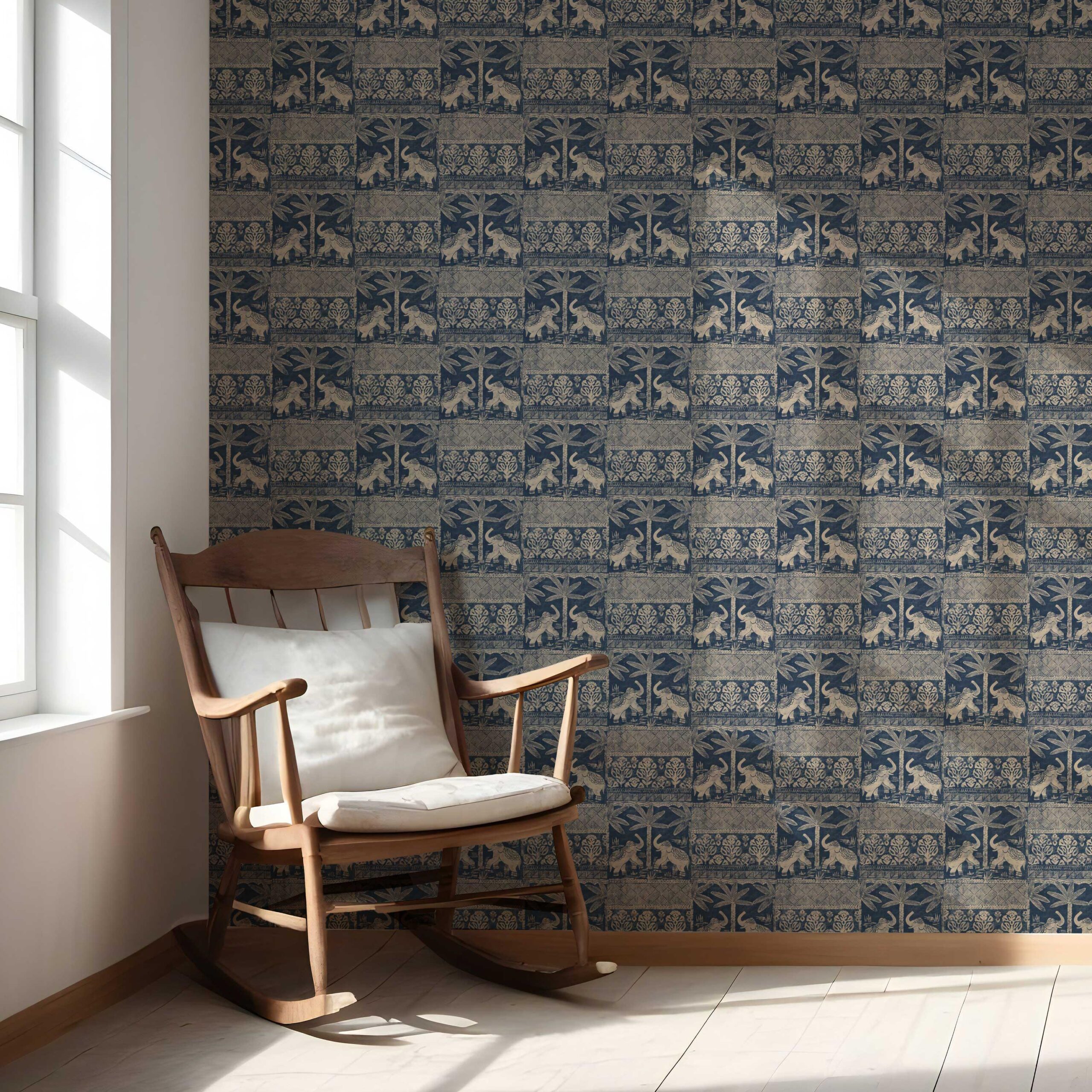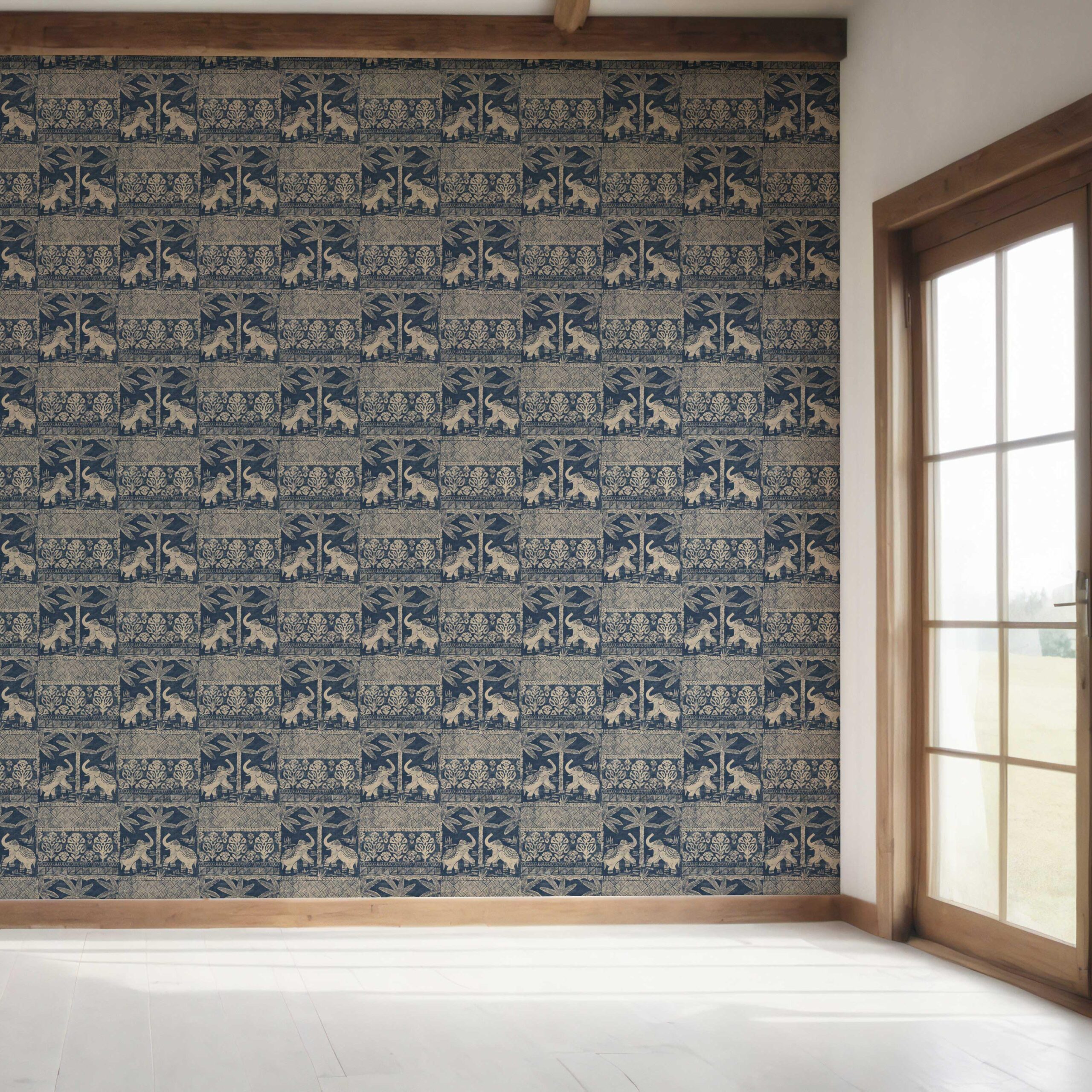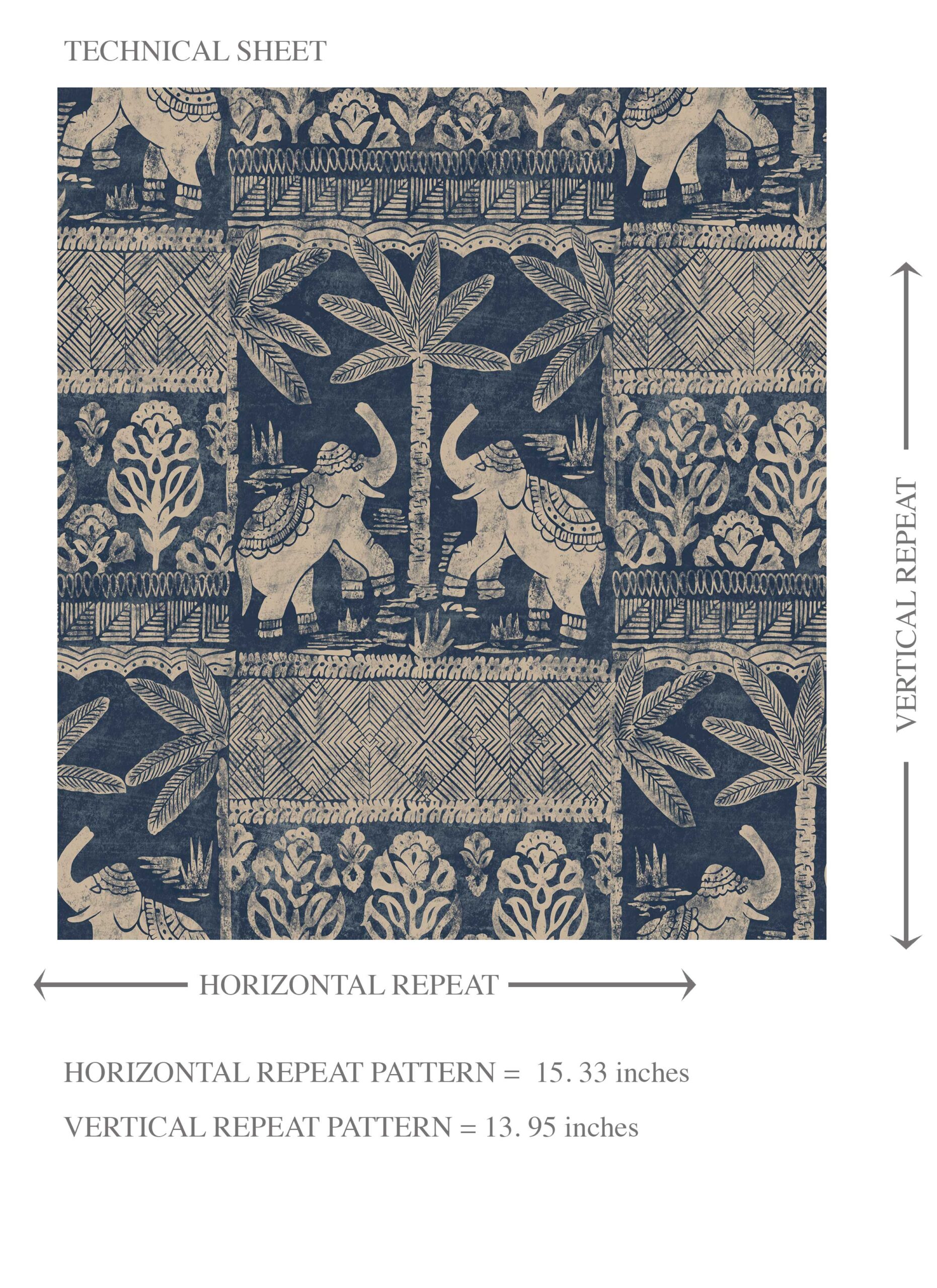 NON-PASTED: ‘Kalapi’ is an unpasted wallpaper installed by applying adhesive paste (not provided by us, but easy to source) to the wall. While peel-and-stick papers do not leave much room to change the paper’s position once you start applying it, the traditional, non-pasted application is more forgiving, allowing for better positioning when matching patterns.