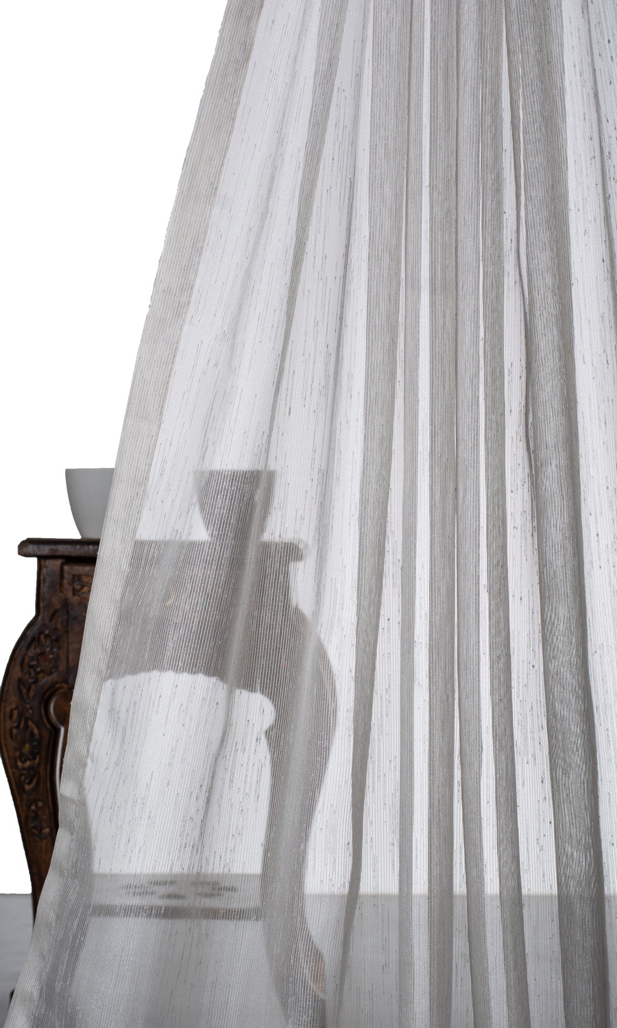 Putting out a minimalistic aesthetic at its fore and yet not renouncing the luxury of a tangible texture, this gray sheer highlights the power of subtle detail that can make a world of difference to an unadorned setting. Its woven striped pattern delivered through a textured weave offers a moment of silent allure. And, its sheer weave ensures that the home is not deprived of natural light and fresh air nor compromised of its precious privacy.