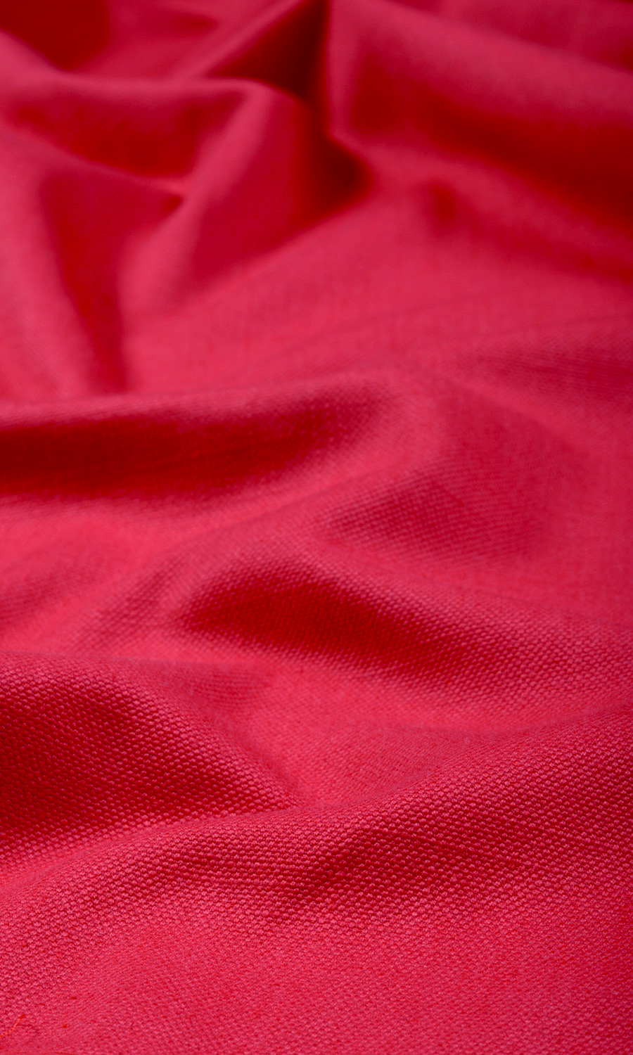 Bold grace translated into drapery fabric. Kokkino is a raspberry red fabric with undertones of pink. This poly-cotton blend fabric is woven to last long without losing shape or shade. Recommended for interiors with heavy traffic that need a touch of glamor.
