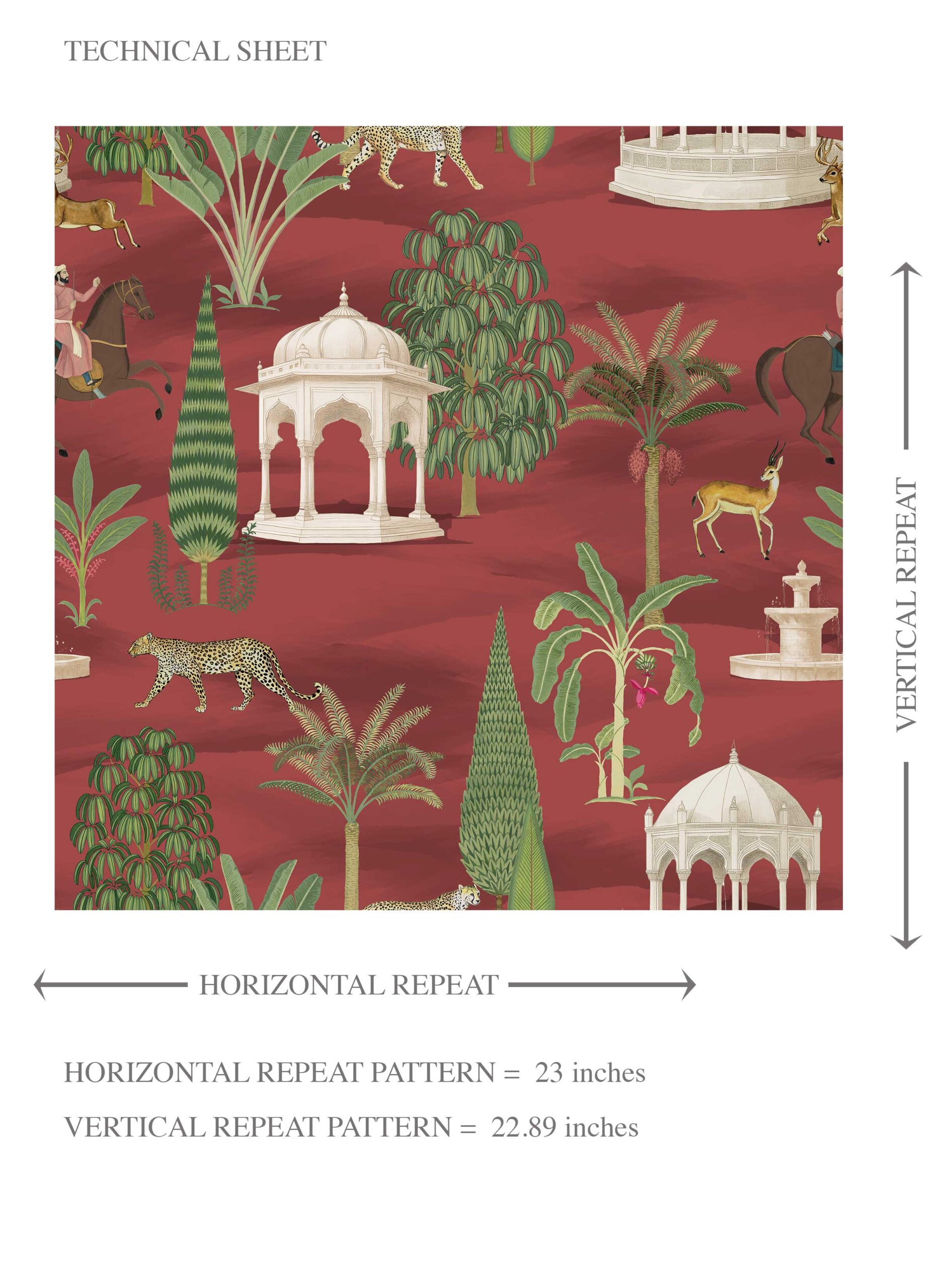 NON-PASTED: ‘Konark’ is an unpasted wallpaper installed by applying adhesive paste (not provided by us, but easy to source) to the wall. While peel-and-stick papers do not leave much room to change the paper’s position once you start applying it, the traditional, non-pasted application is more forgiving, allowing for better positioning when matching patterns.